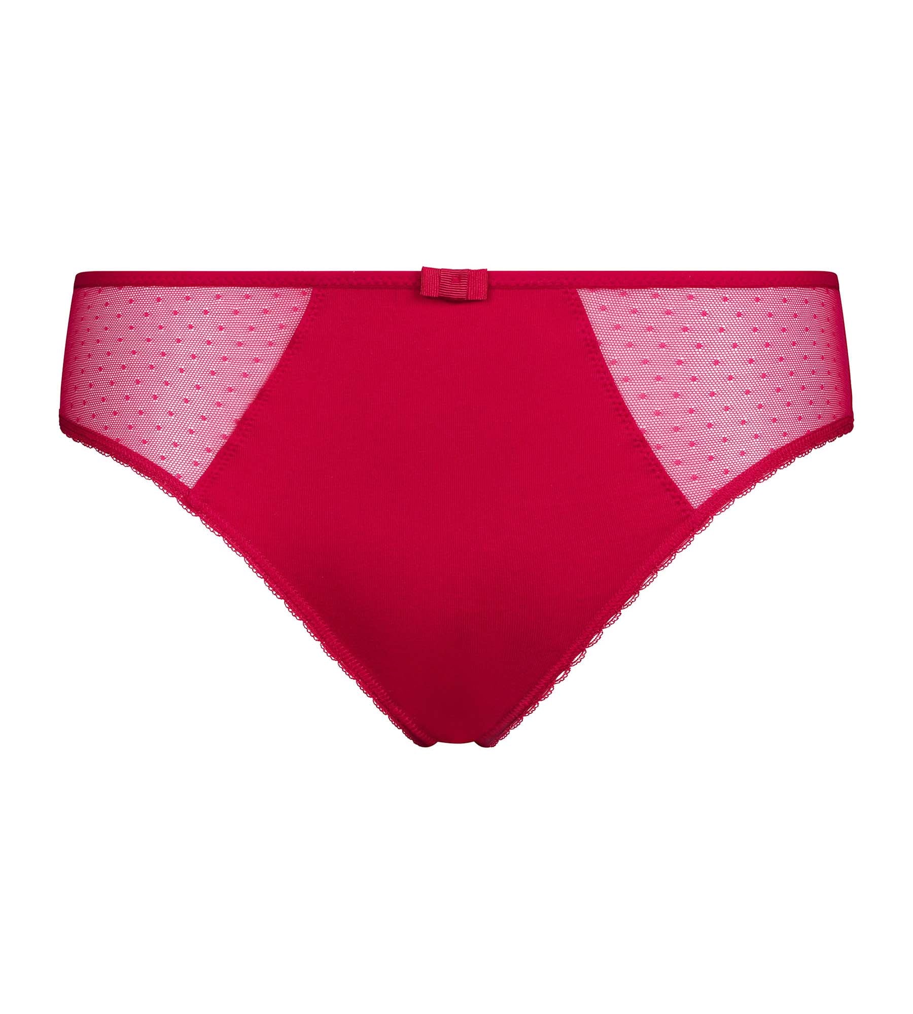 Atrévete con el colorido de las bragas Generous Cherry Rojo de algodón orgánico y sus delicadas inserciones de tul con plumas.