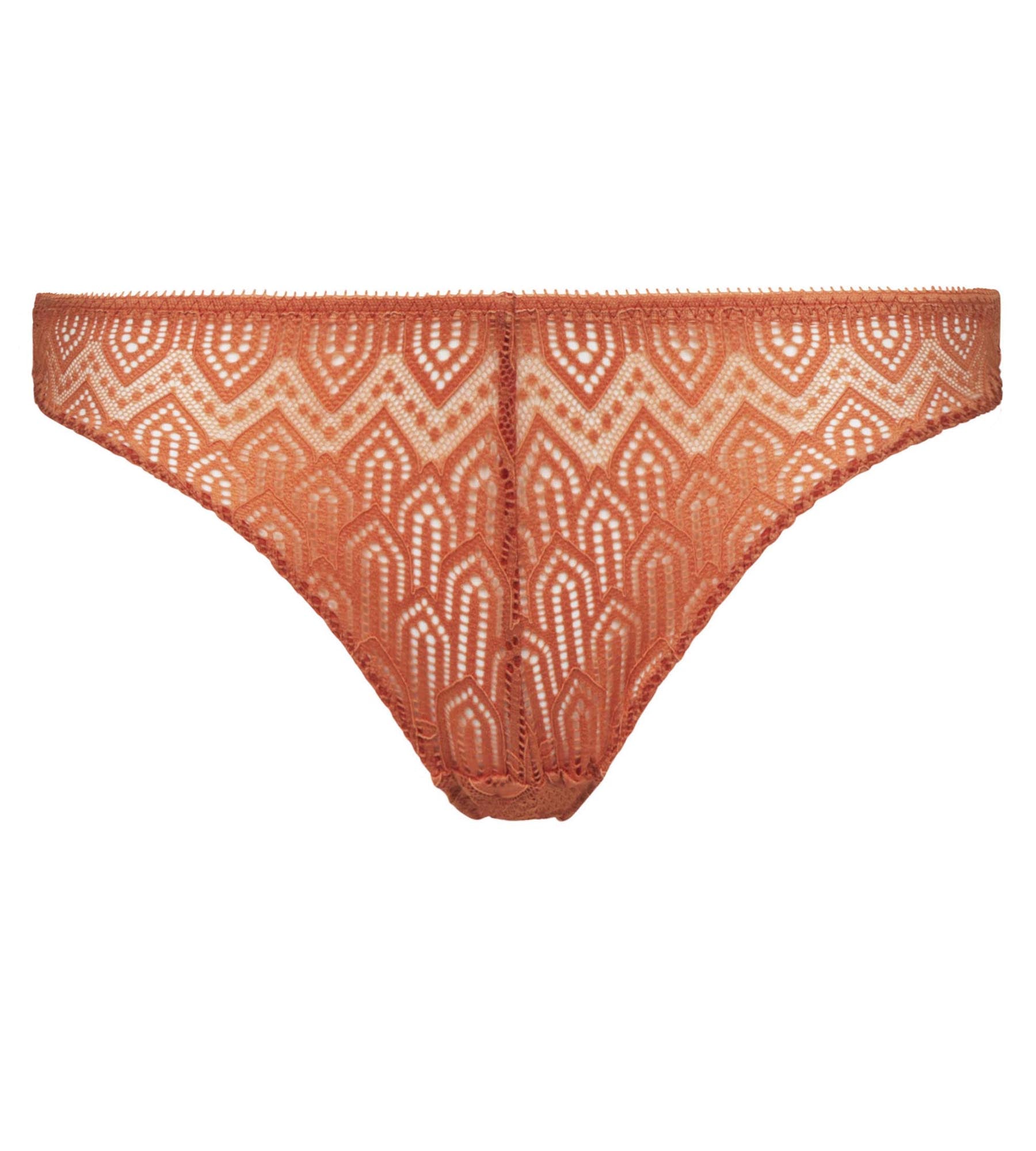 Un color vitalista y seductor te sentará genial: hazte con la braguita brasileña de encaje con motivos Art Déco Naranja Mod de Dim