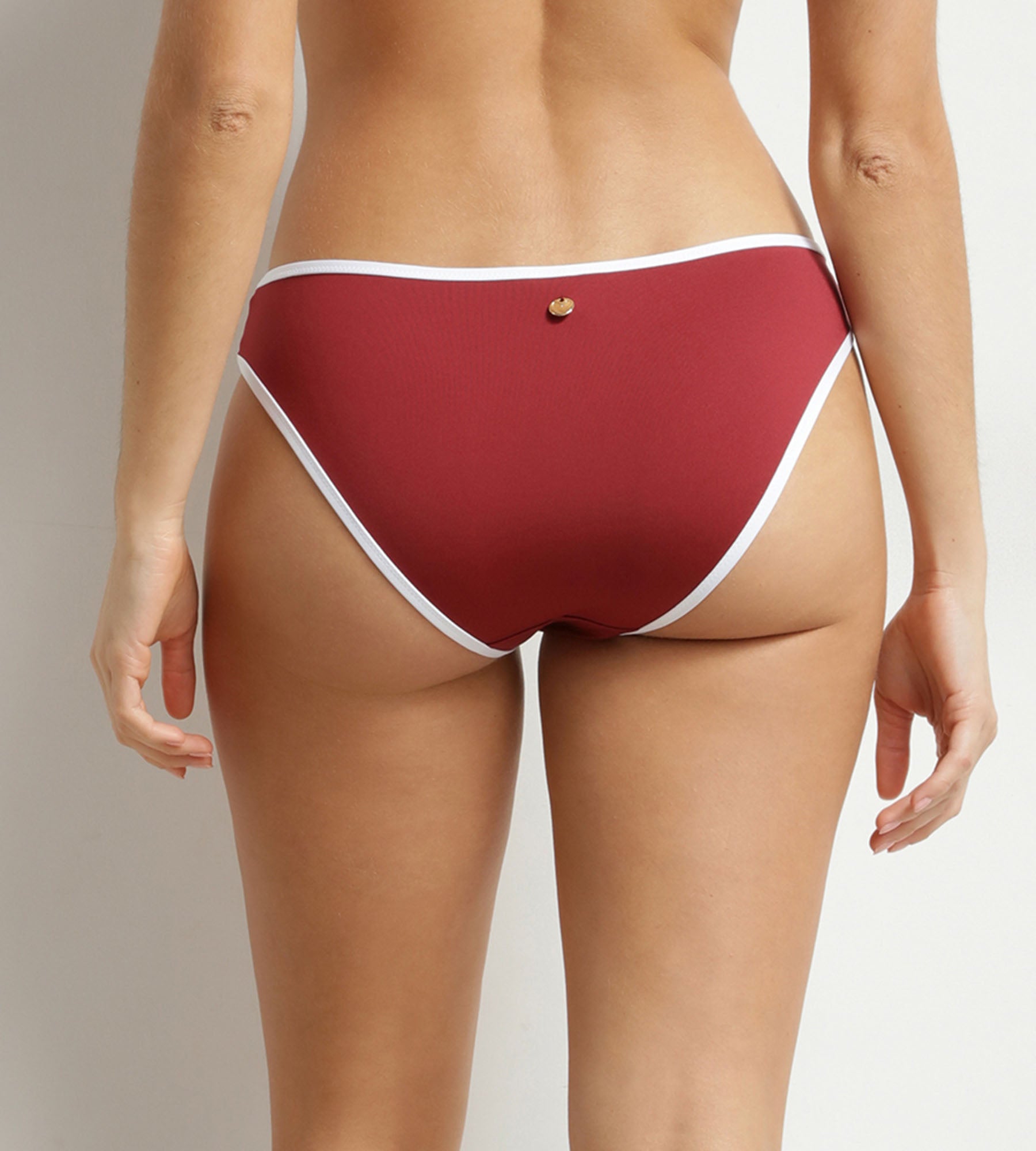 Un rojo intenso, una línea nítida y un detalle dorado: la braguita de bañador para mujer Dim Timeless apuesta por la elegancia veraniega.