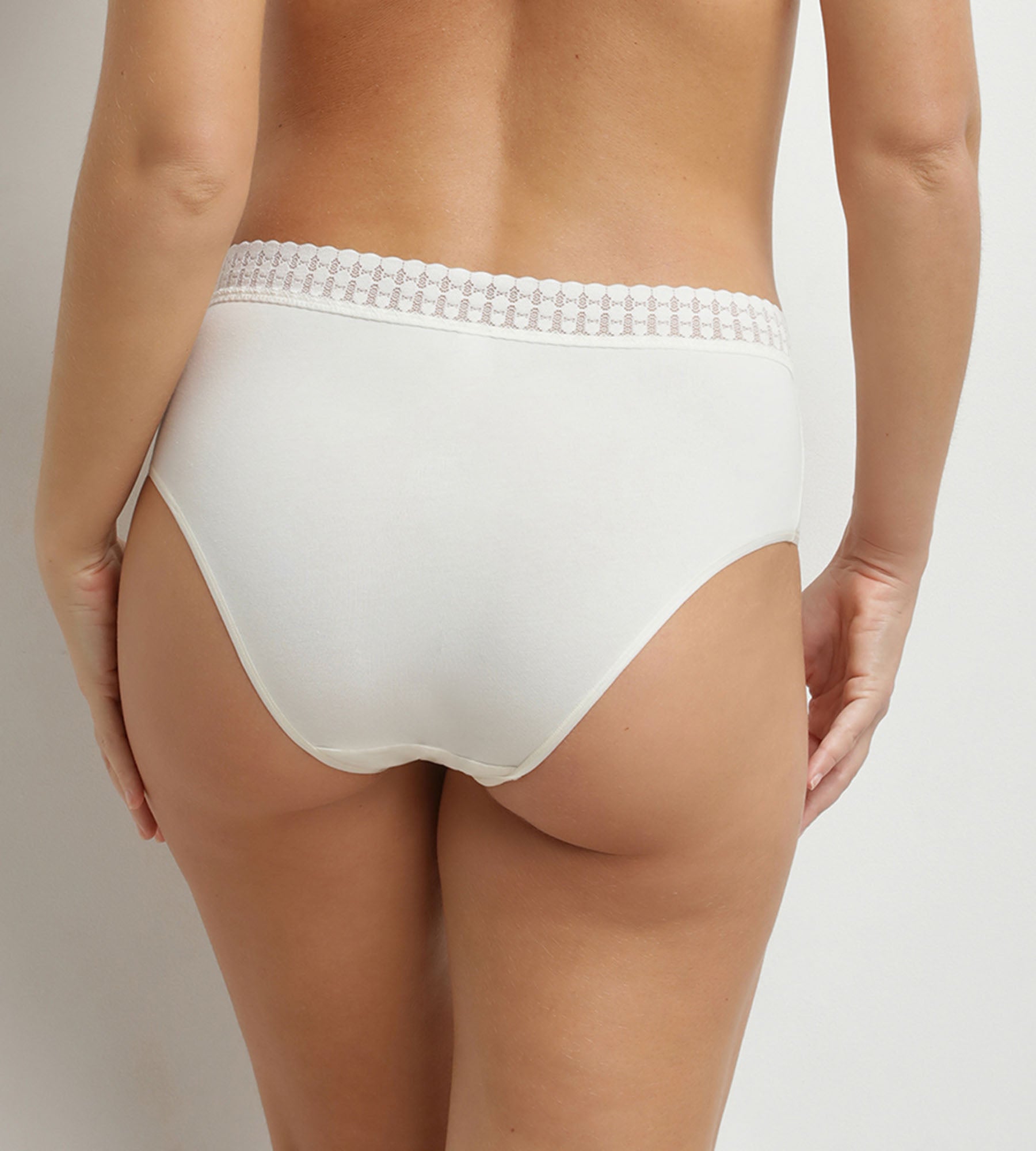 Las braguitas de mujer Daily Coton ofrecen una sujeción natural y suave. Su tejido fluido se adapta al cuerpo sin comprimirlo y su cintura de encaje añade un toque refinado a la comodidad del algodón modal. Estas braguitas de talle alto realzan la silueta sin dejar de ser perfectamente invisibles bajo la ropa. El tono marfil aporta una nota luminosa y versátil, fácil de combinar en el día a día.