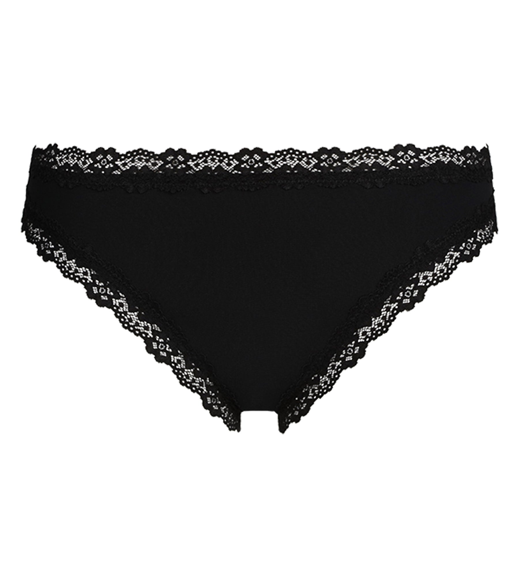 Luce un look cómodo y elegante con las braguitas brasileñas Dim Mini Lace de microfibra y encaje negro.