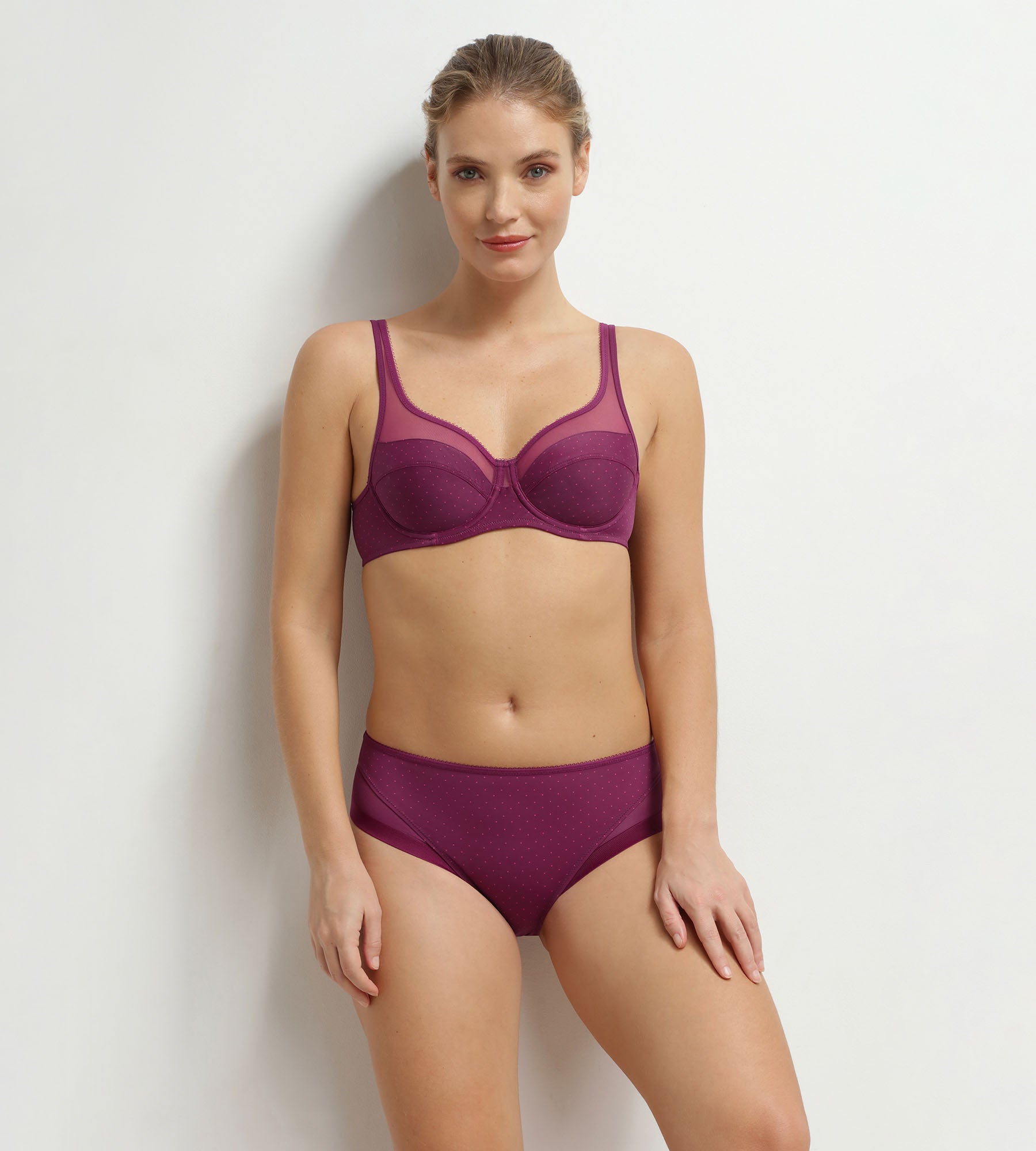 Completa tu conjunto con el sujetador con aros Generous Burdeos a juego, o Déjate seducir por los demás conjuntos lisos o estampados de la colección Generous de Dim.