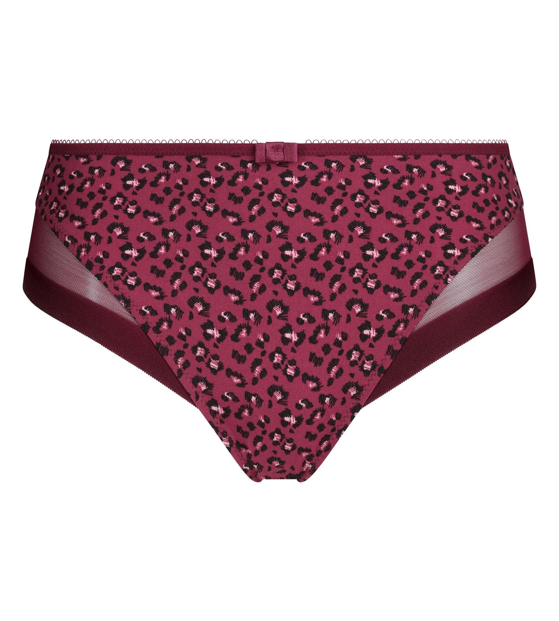 Déjate seducir por el reconfortante diseño de las braguitas Dim Generous para mujer, confeccionadas en microfibra y tul, en un cálido tono rojo con reflejos marrones.