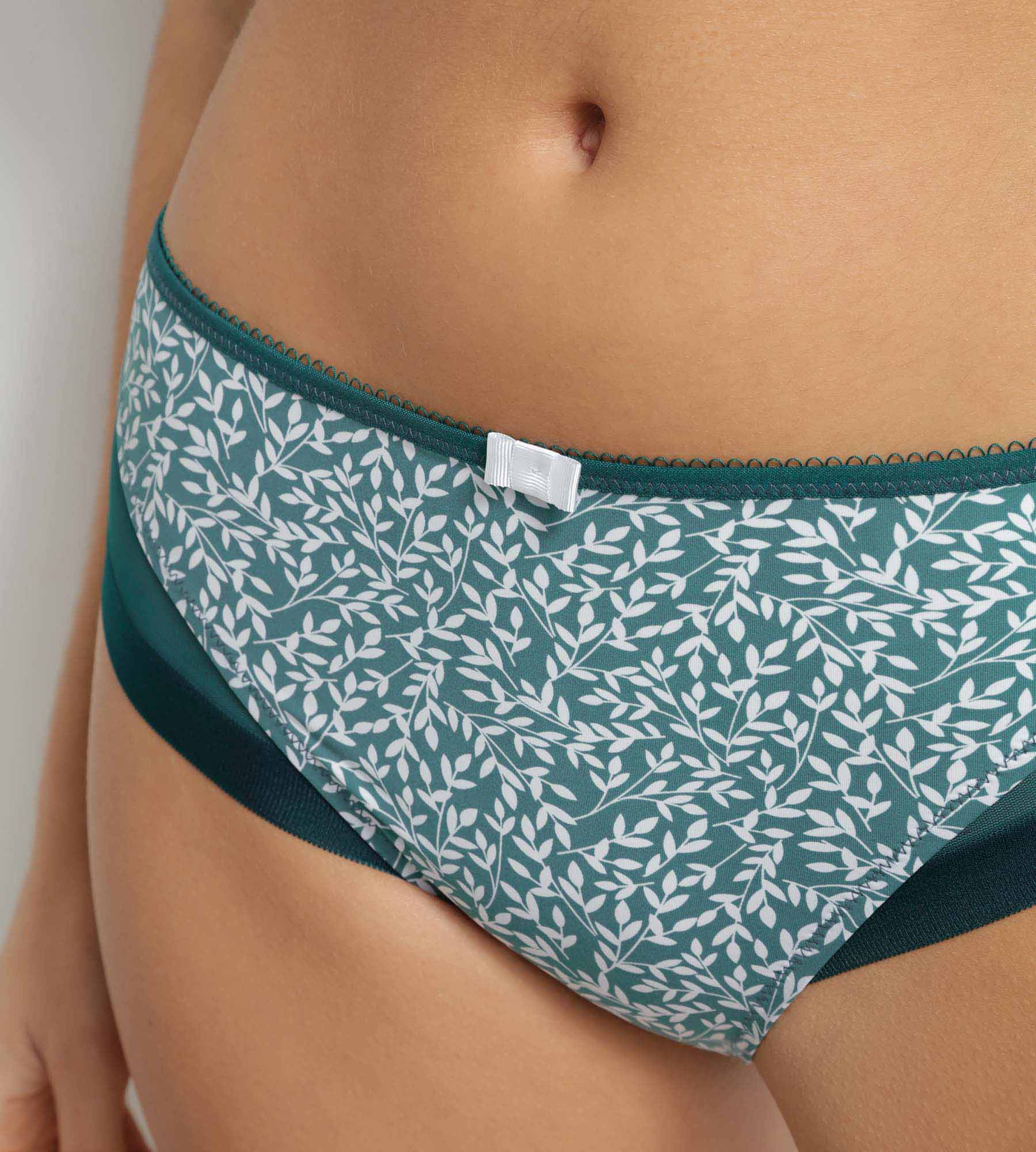 Déjate seducir por las braguitas Dim Generous de microfibra y tul verde hidro, un modelo fresco y luminoso que combina comodidad y elegancia.