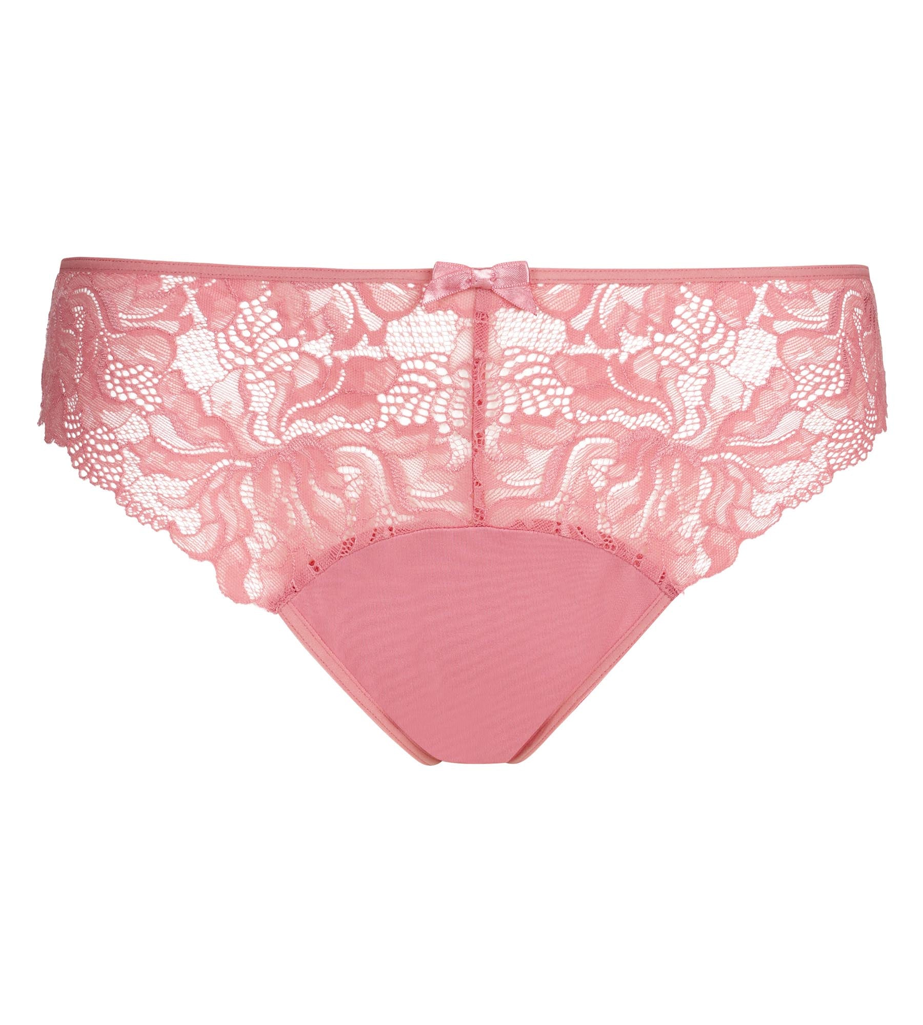 Delicadas y femeninas, las braguitas Dim Generous Essentiel de encaje y microfibra en color rosa pálido aportan un toque de suavidad al día a día.