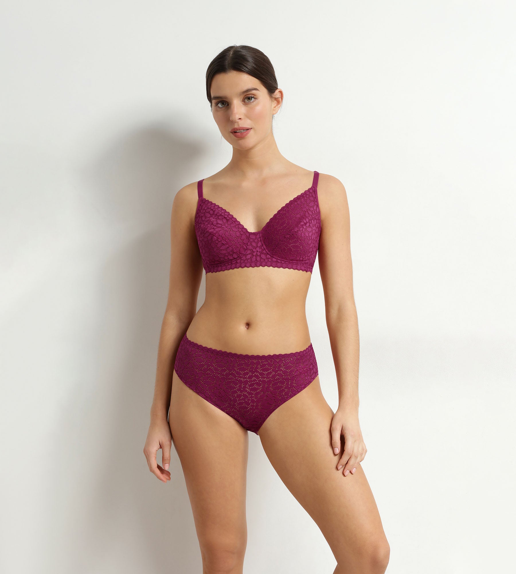 Completa tu conjunto con el sujetador sin aros de encaje Daily Dentelle del mismo color, o Déjate seducir por los otros colores disponibles, como el precioso Vert Émeraude.