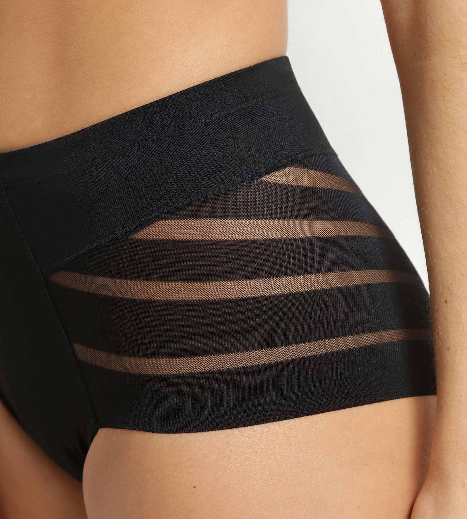 Las braguitas midi Dim Silhouette Élégance de microfibra negra moldean la cintura, controlan el vientre y pasan desapercibidas bajo las prendas ajustadas.