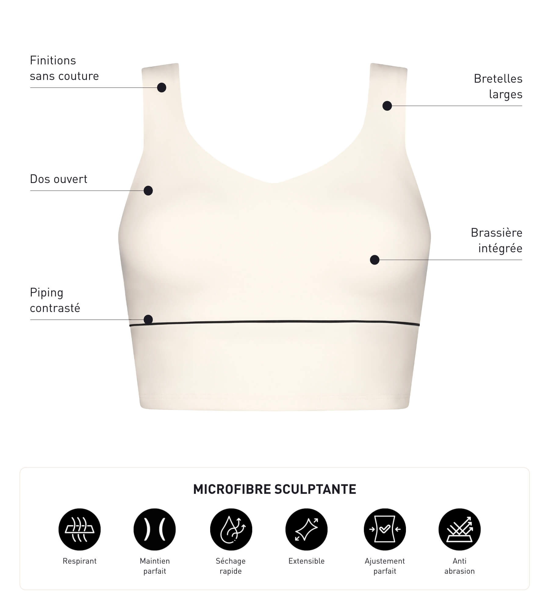 La genialidad de la ropa deportiva de la colección Dim Move viene por la combinación de materiales técnicos seguros, resistentes, flexibles y muy transpirables, con una gran variedad de diseños para que se adapten a ti y tus rutinas. Por ejemplo, este bralette largo moldeador o top deportivo en color crudo está hecho de microfibra moldeadora y acabados planos, para que no moleste en ningún momento y el sudor se seque rápido.