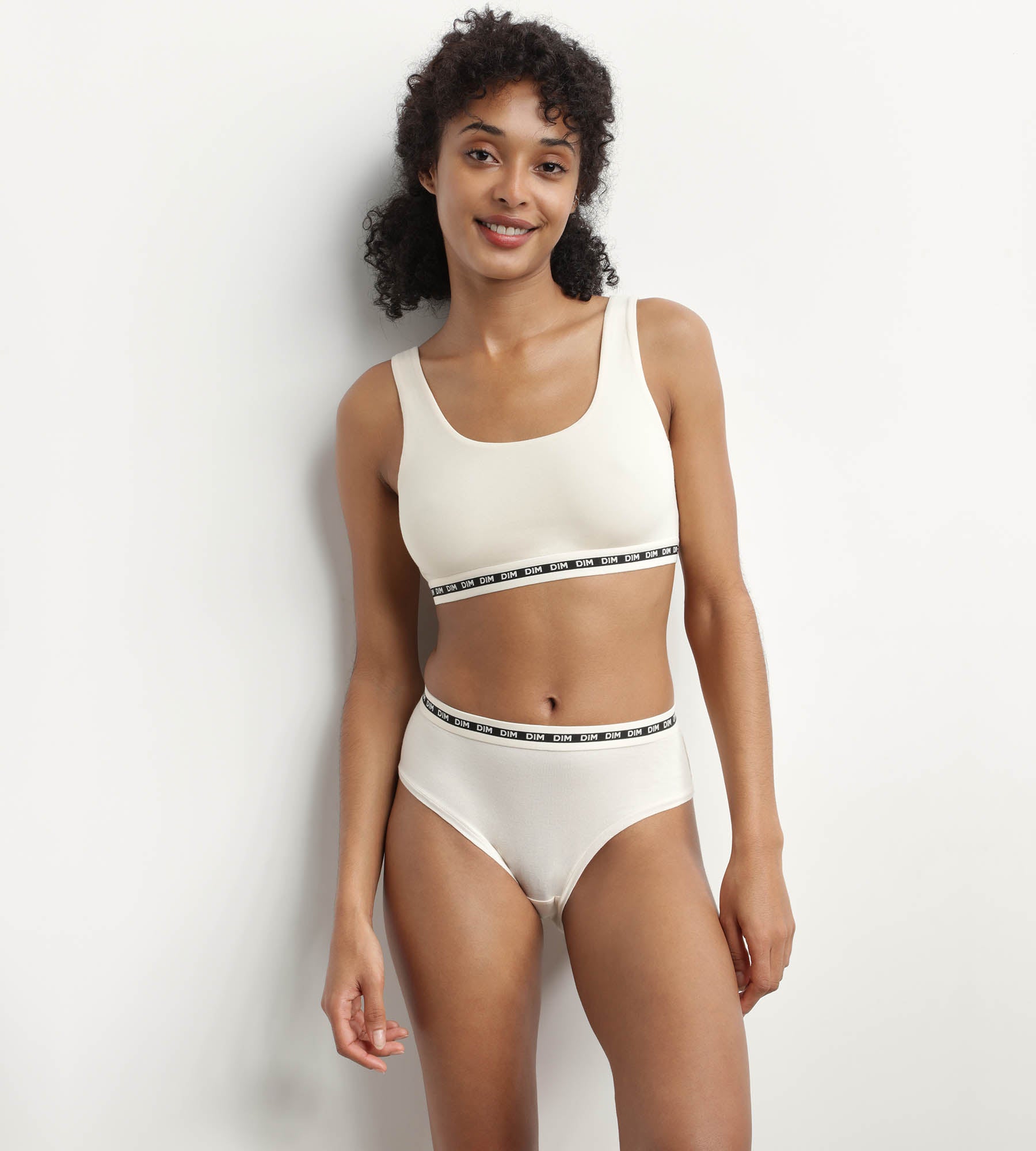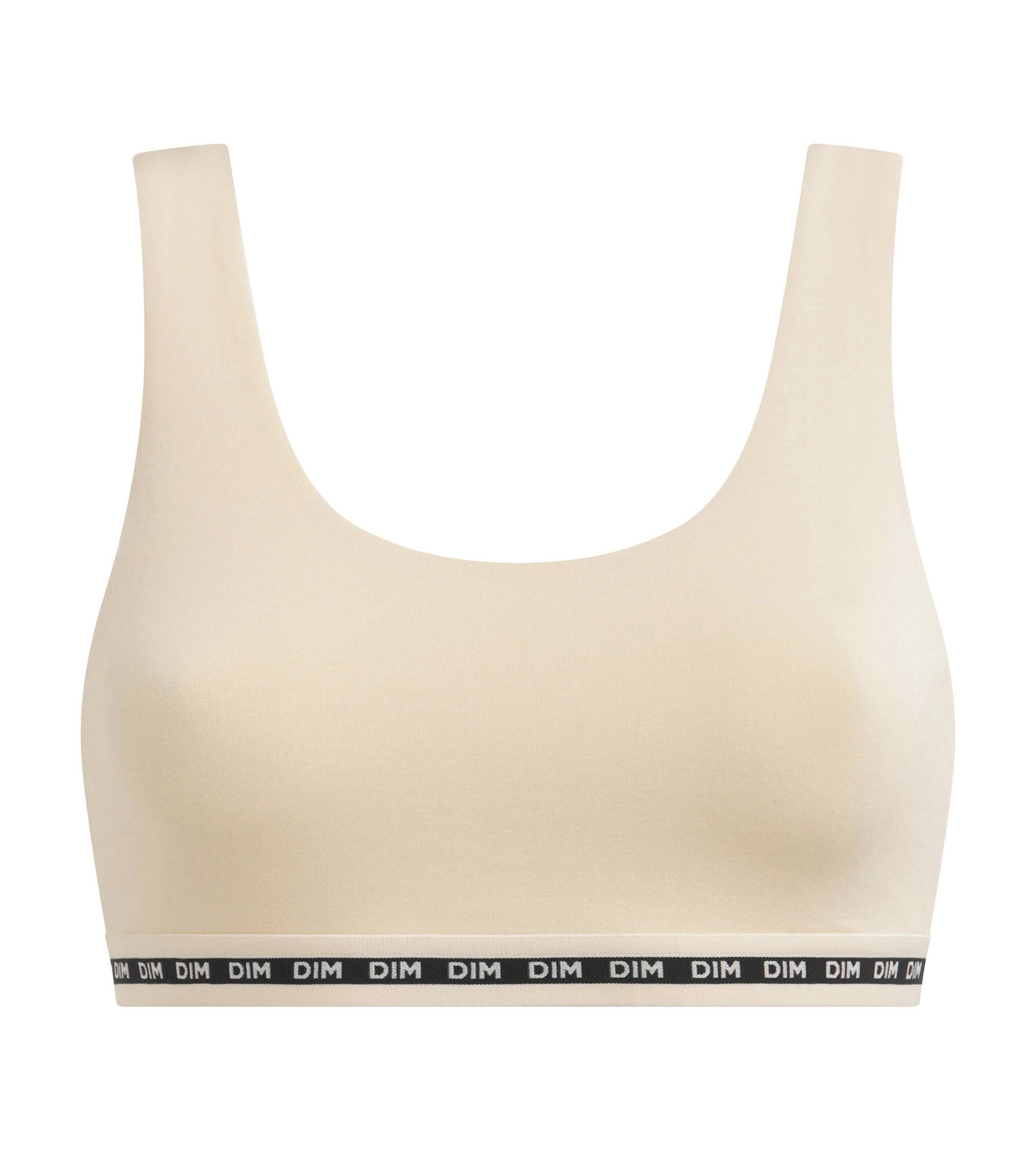 - El corte elástico y actual tipo bralette con logo minimalista de Dim