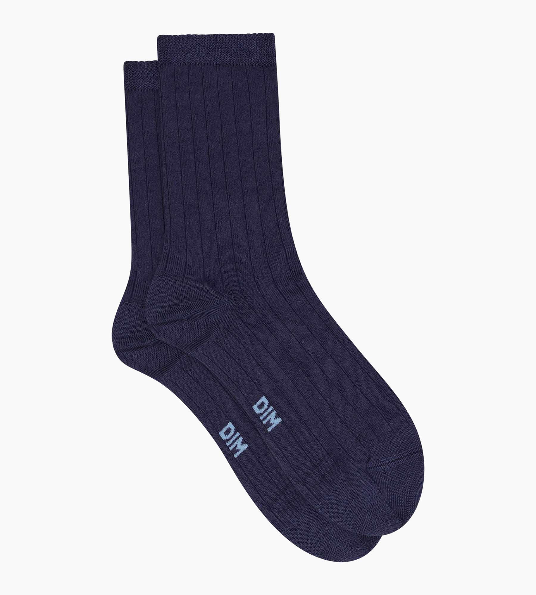 Realza tus básicos con los calcetines de mujer de algodón satinado acanalado Dim Mode, en un tono azul tinta que estiliza la silueta con estilo.