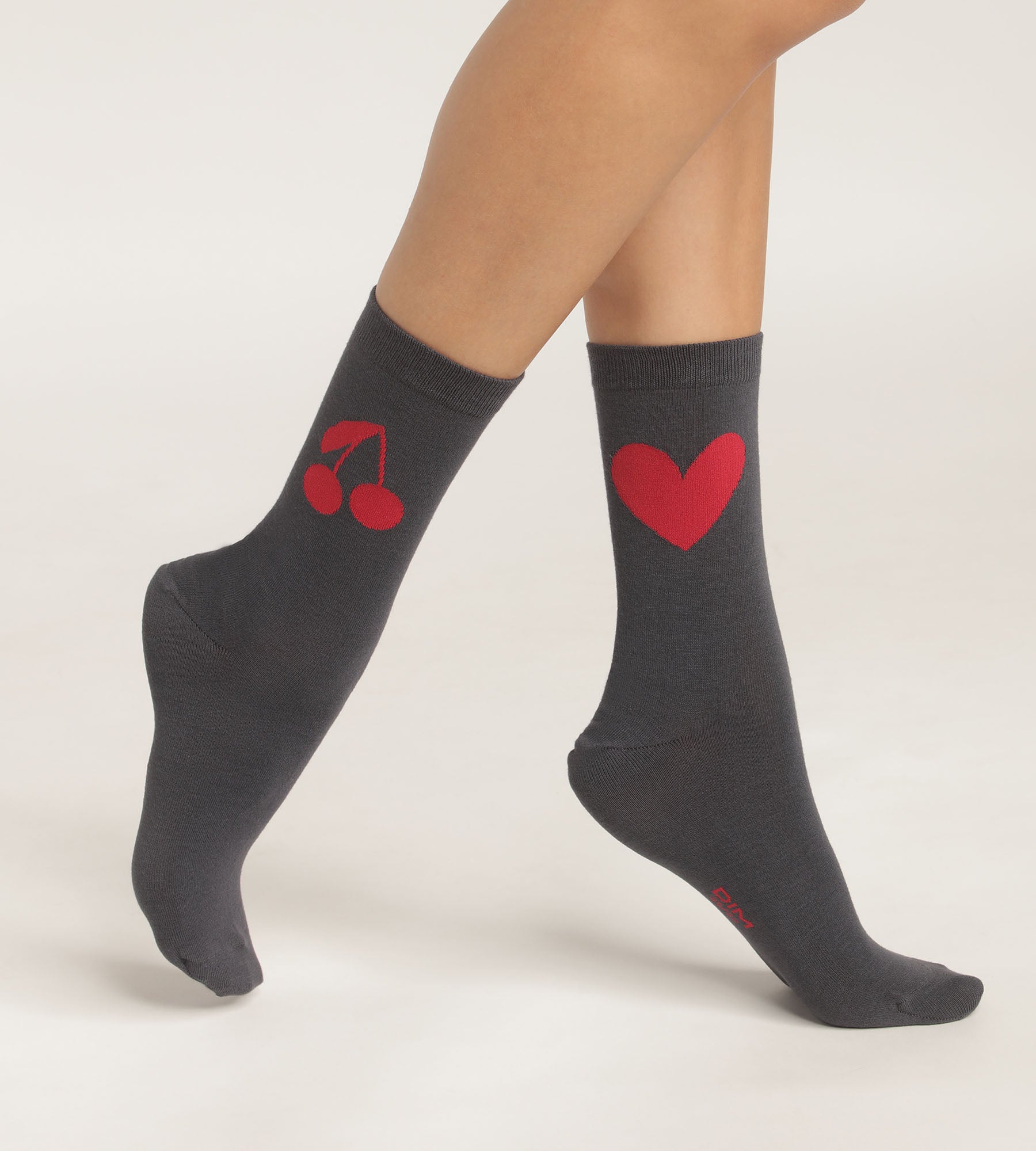 Calcetines de mujer con estampado de corazones y cerezas Dim Bamboo