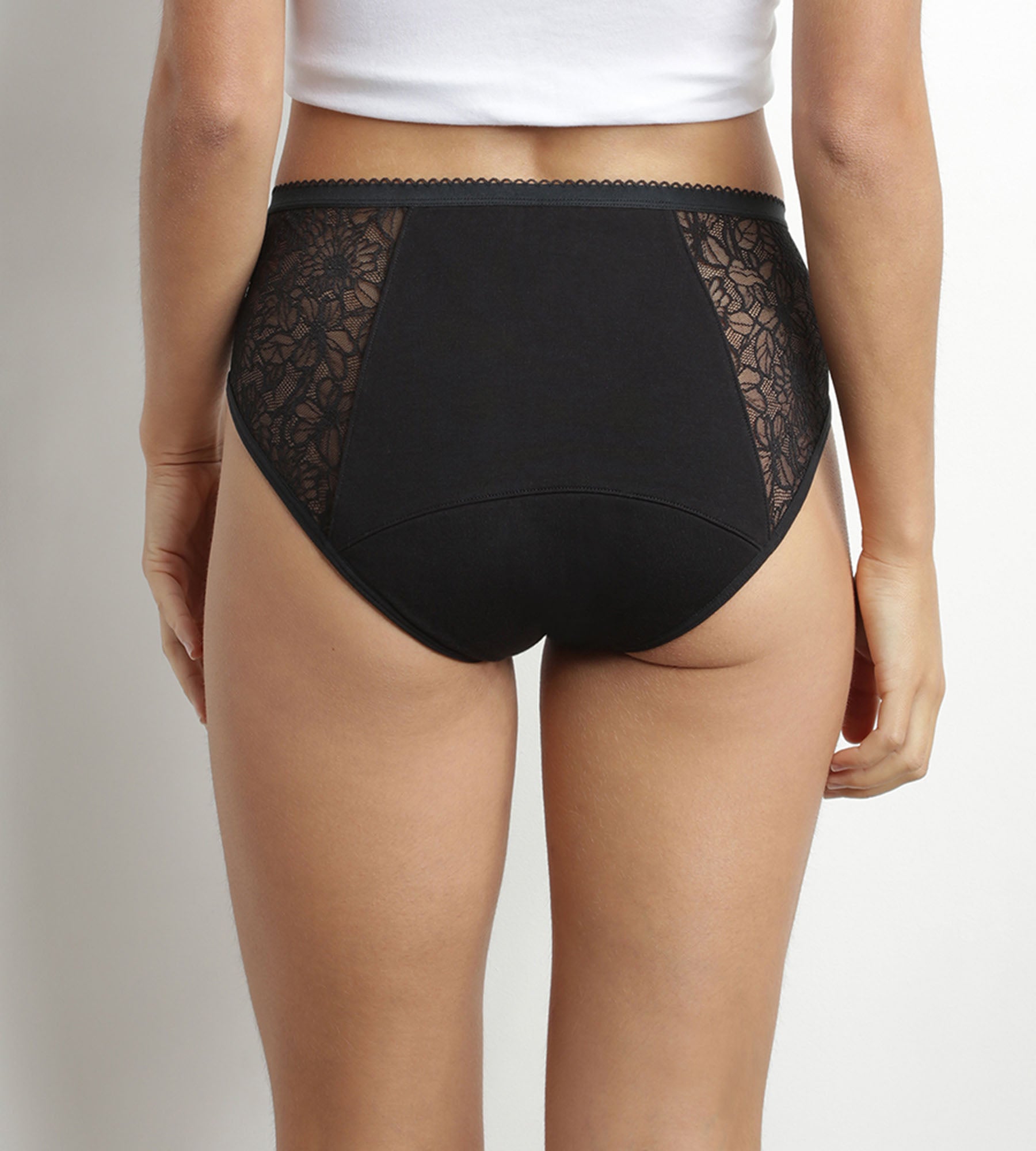 Calzoncillos bóxer menstruales algodón orgánico encaje Negro flujo muy abundante Dim Protect