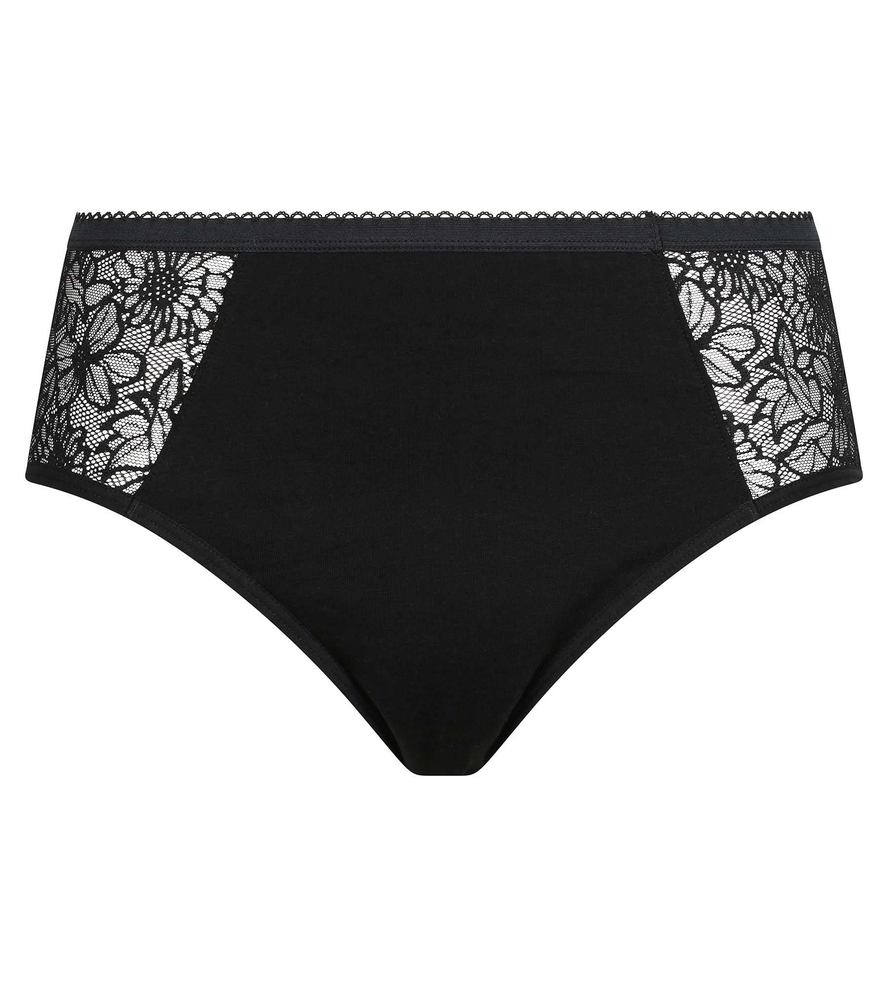 Afronta tu periodo con confianza y elegancia gracias al shorty menstrual Dim Protect de algodón orgánico y encaje floral negro - ¡para flujos muy abundantes!