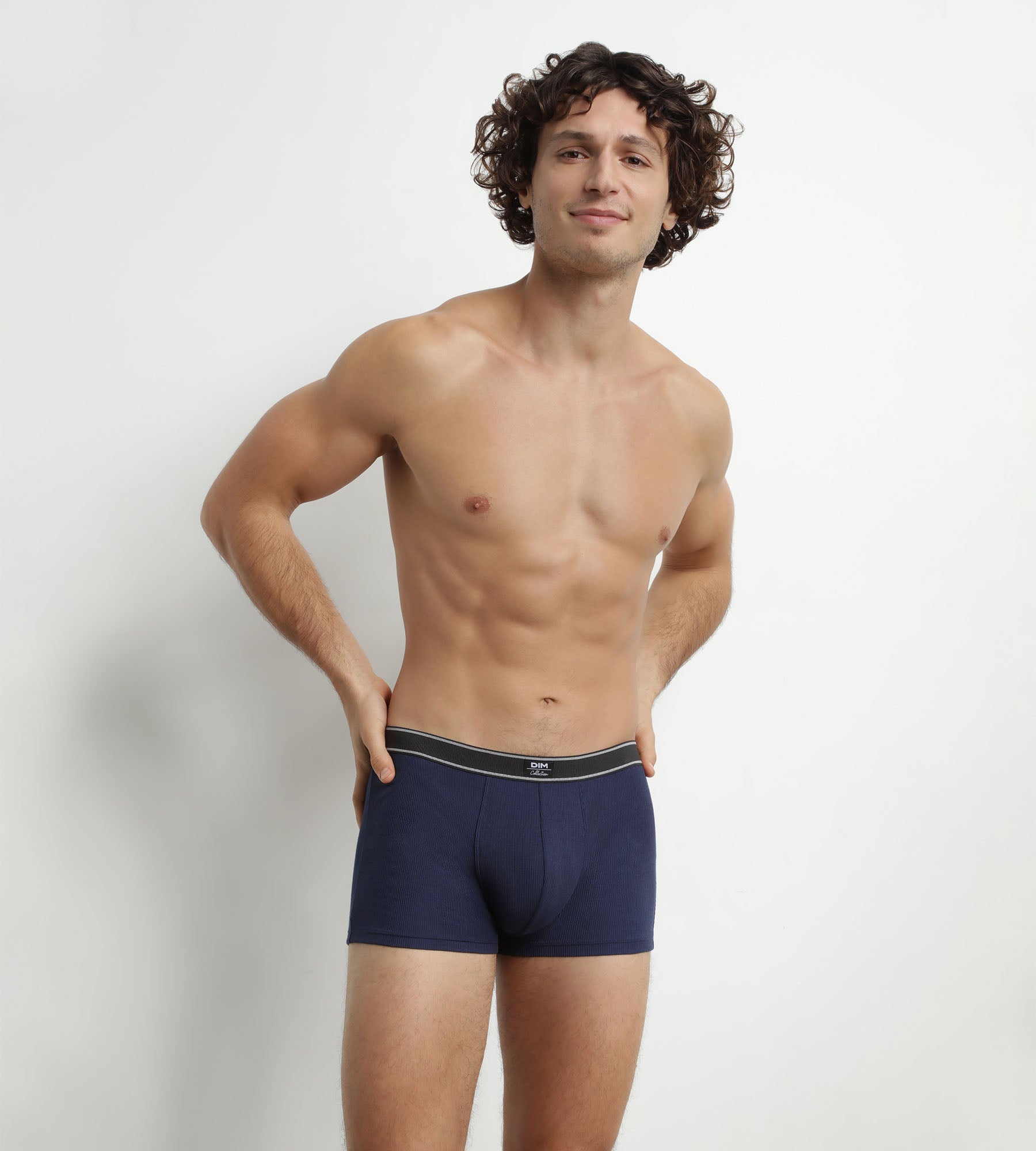 Adopta un look distinguido con los calzoncillos bóxer de algodón modal acanalado Dim Élégant Azul Oscuro.