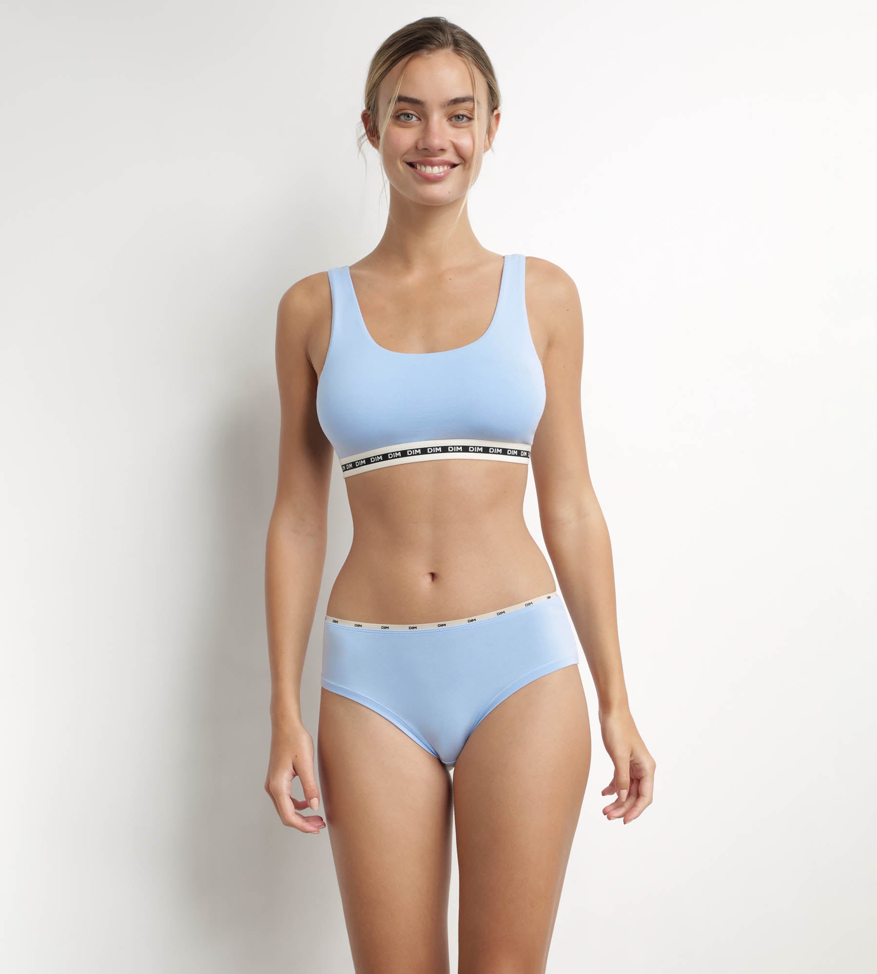 También encontrarás nuestras bragas, tangas, shorties y sujetadores sin aros Dim Icons Essentiel en negro, beige o estampado Dimmania.