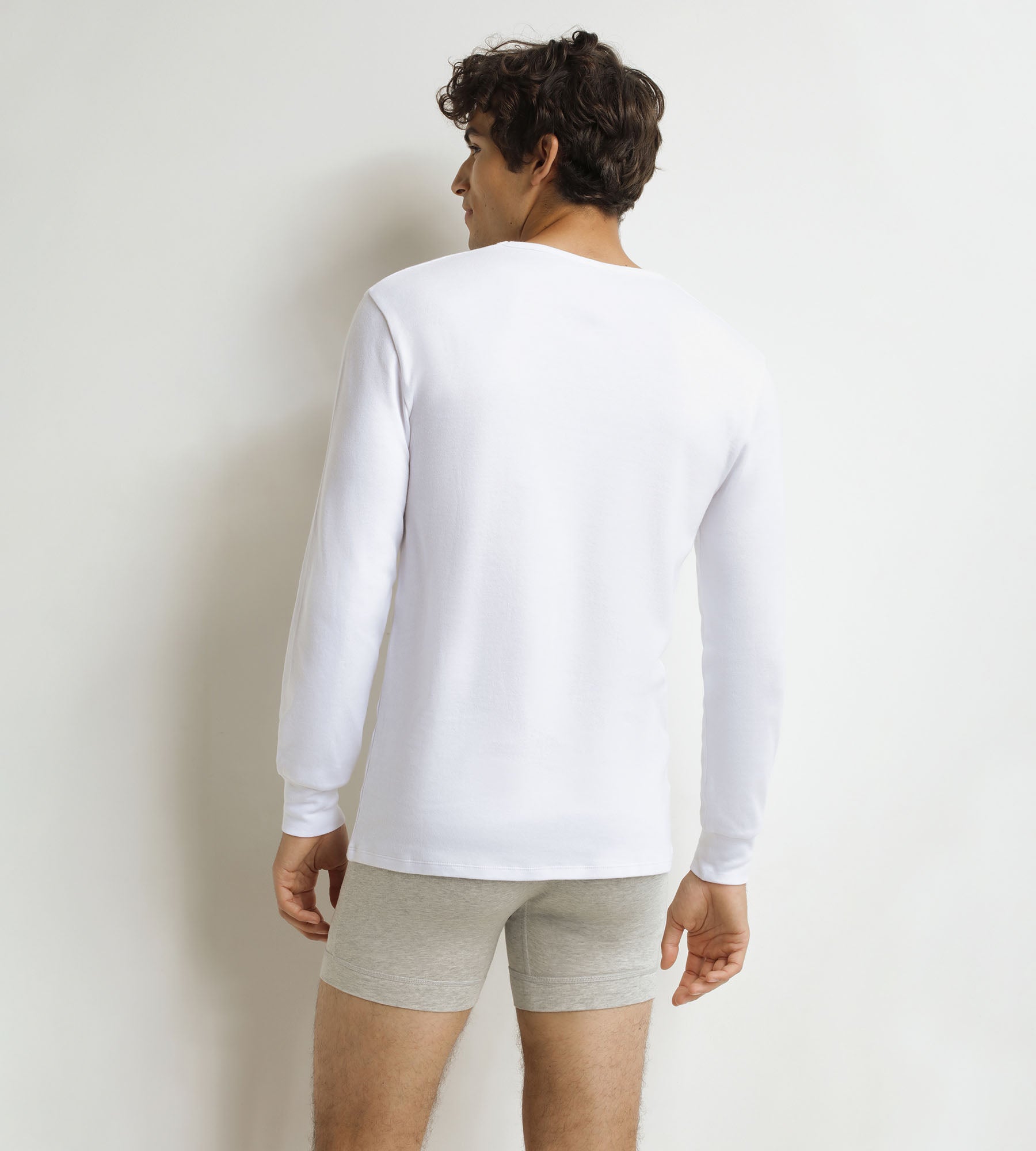 Aiméliore sus días de invierno con la camiseta de hombre Dim Thermal blanca de algodón aislante.