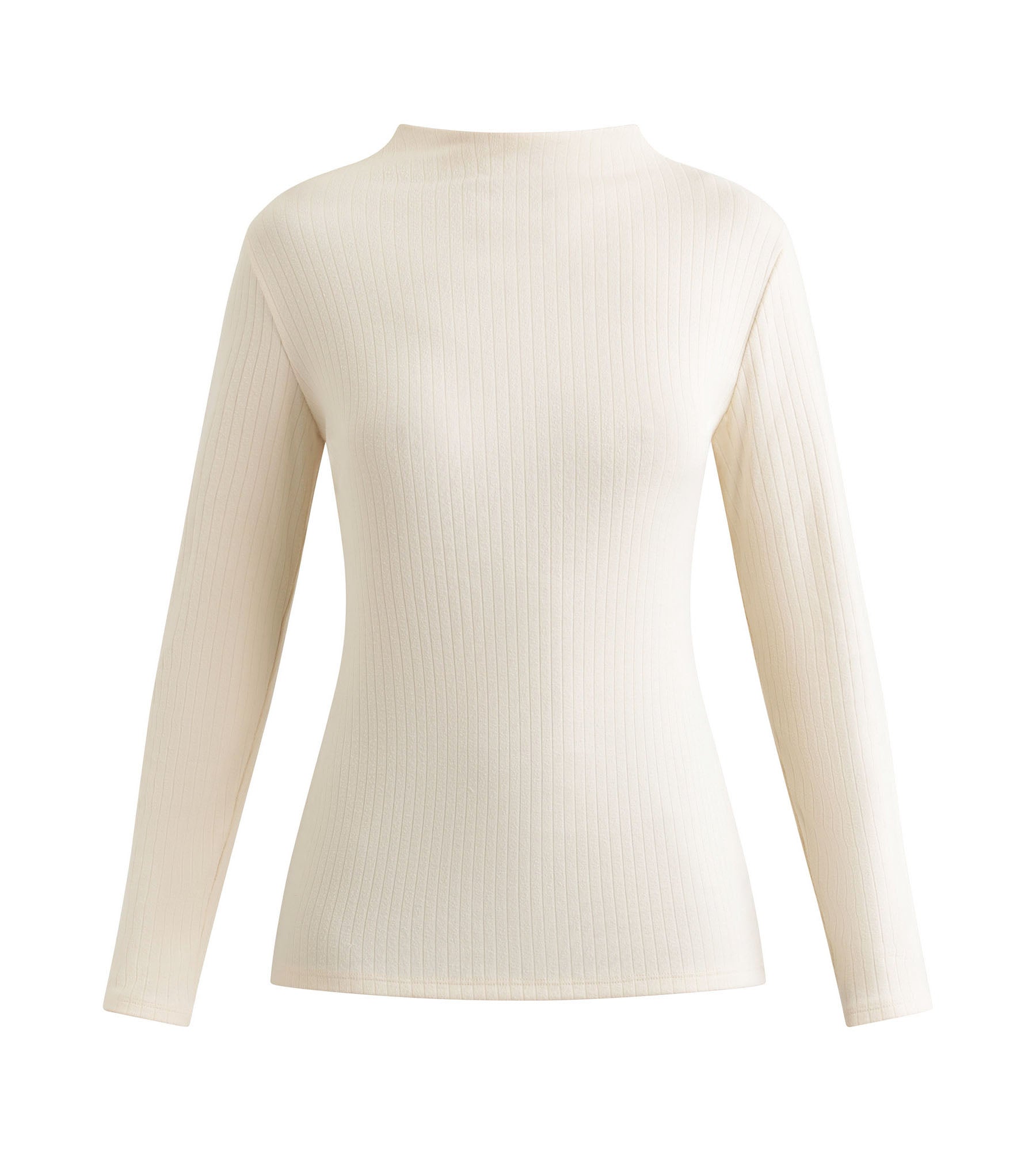 Camiseta de mujer de canalé con cuello alto Beige Dim Thermal