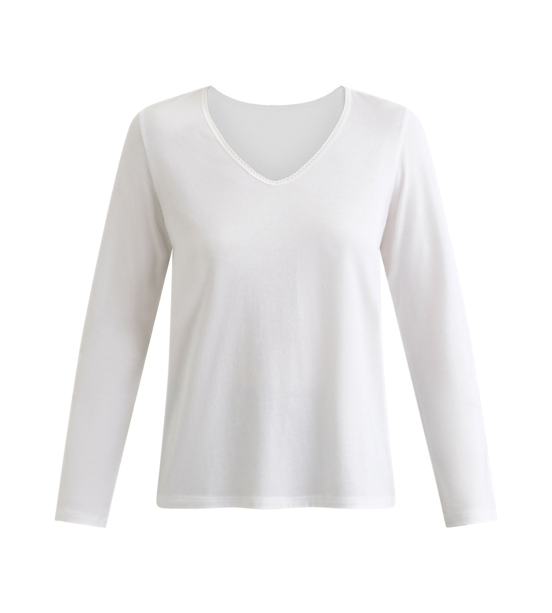 Camiseta de mujer de manga larga de algodón Blanco Dim Thermal