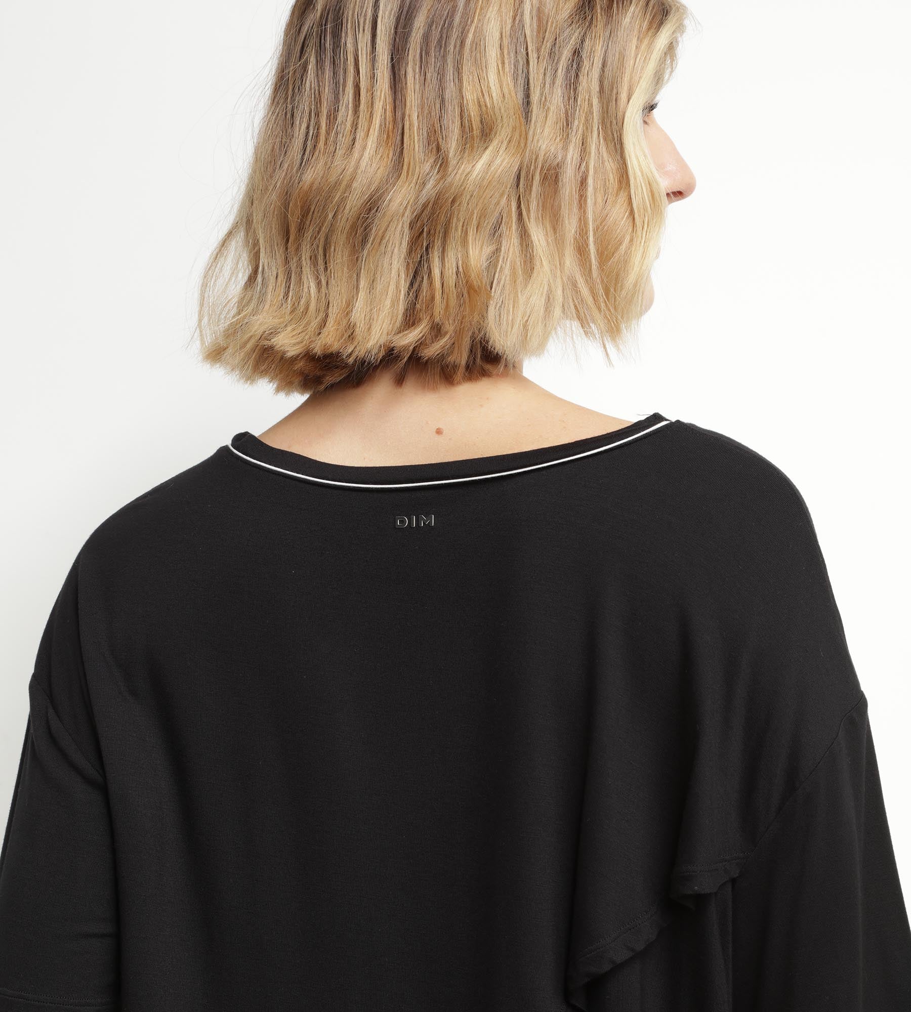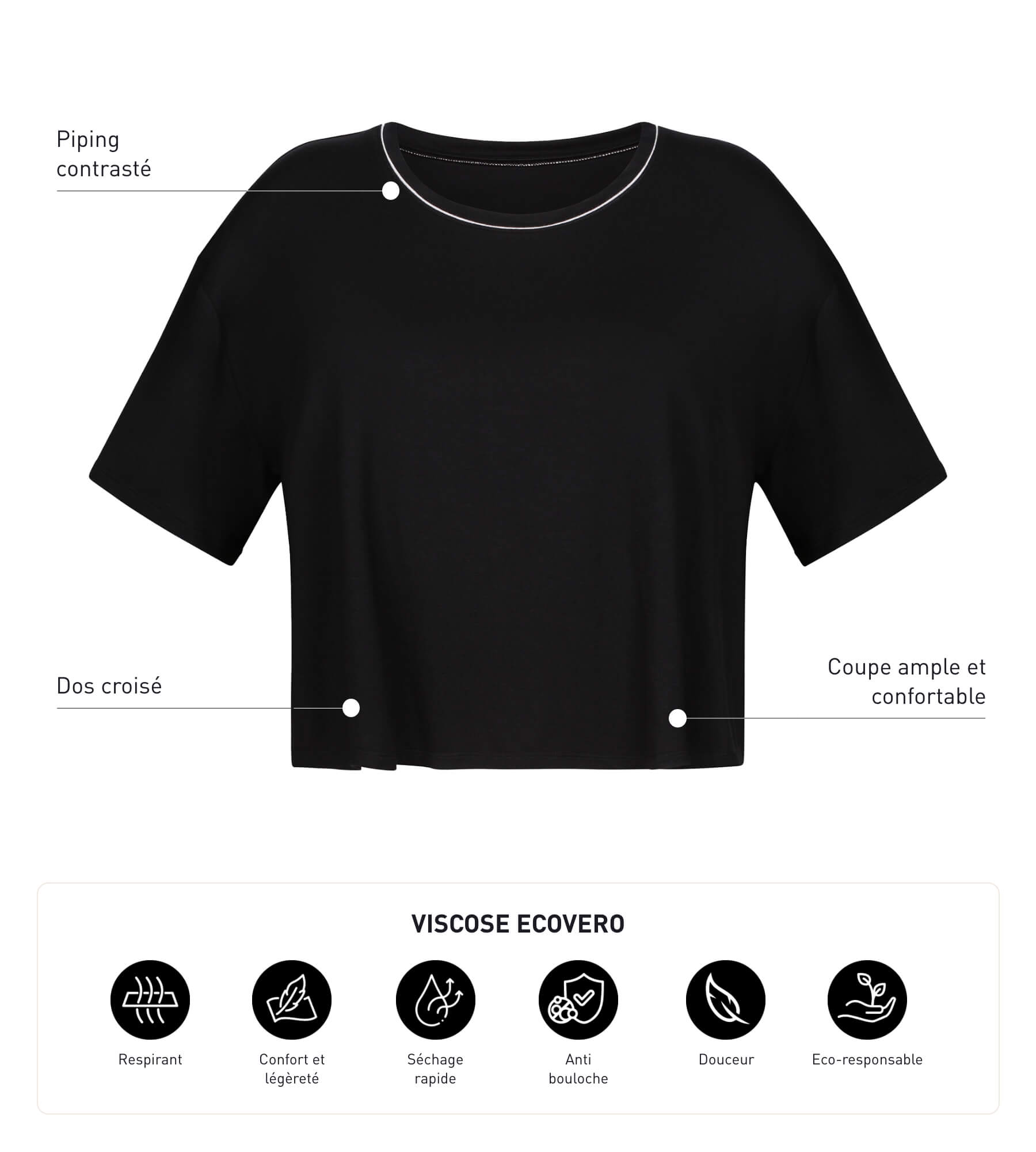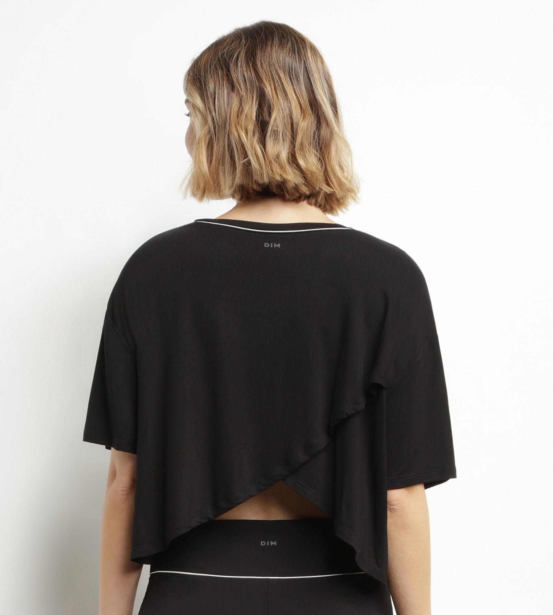 Diseñada para colocártela sobre tus sujetadores deportivos favoritos, esta camiseta deportiva de viscosa negra de Dim Move completa tu look deportivo. Está hecha en un fluido tejido de viscosa que se seca rápidamente y permite que la piel respire. También nos encantan algunos detalles de esta prenda como la espalda abierta y cruzada, su diseño oversize y escote barco.