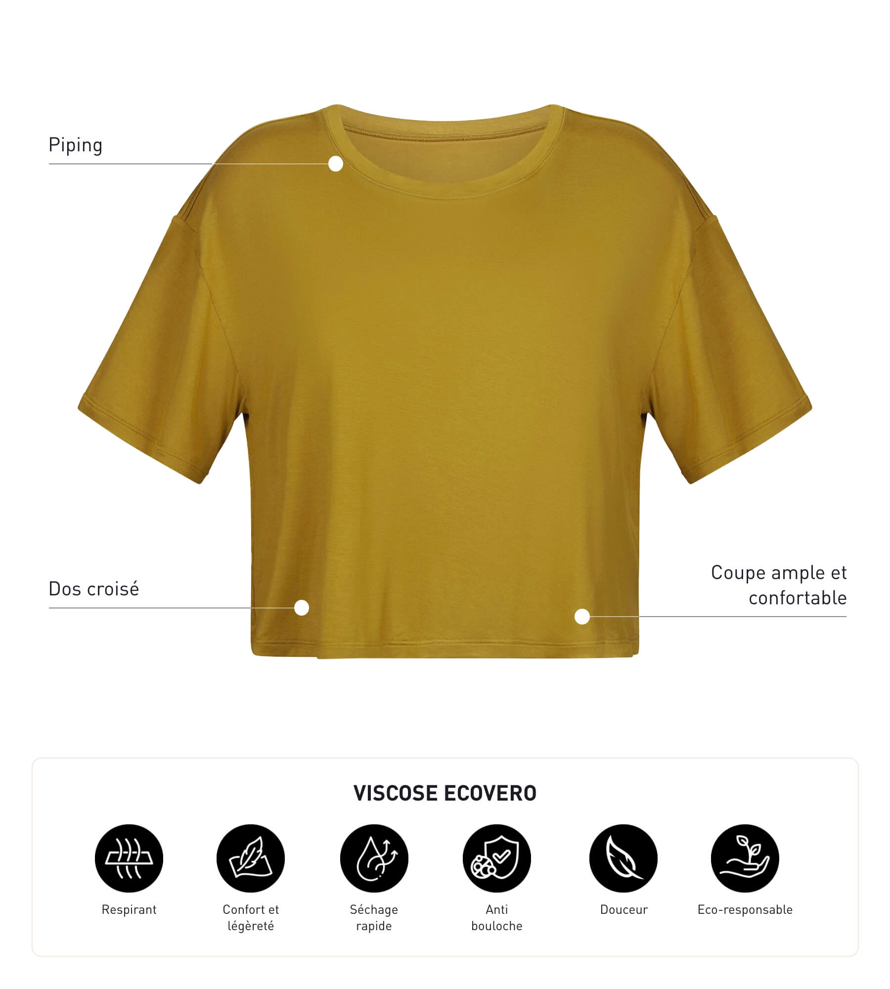 - El tejido de viscosa, ligero y transpirable, ideal para el deporte.