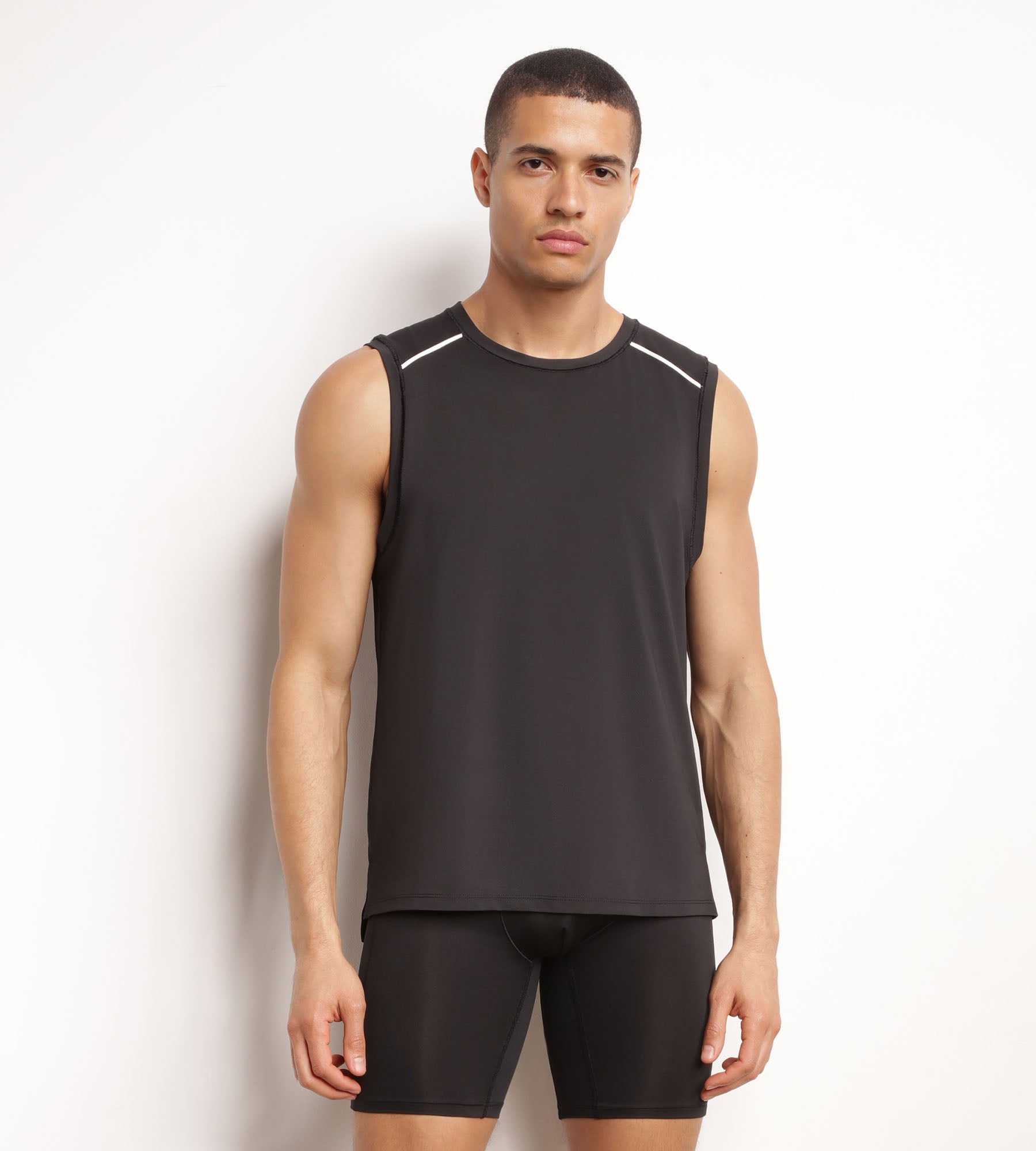 Camiseta deportiva sin mangas para hombre en tejido vaporoso negro Dim Move