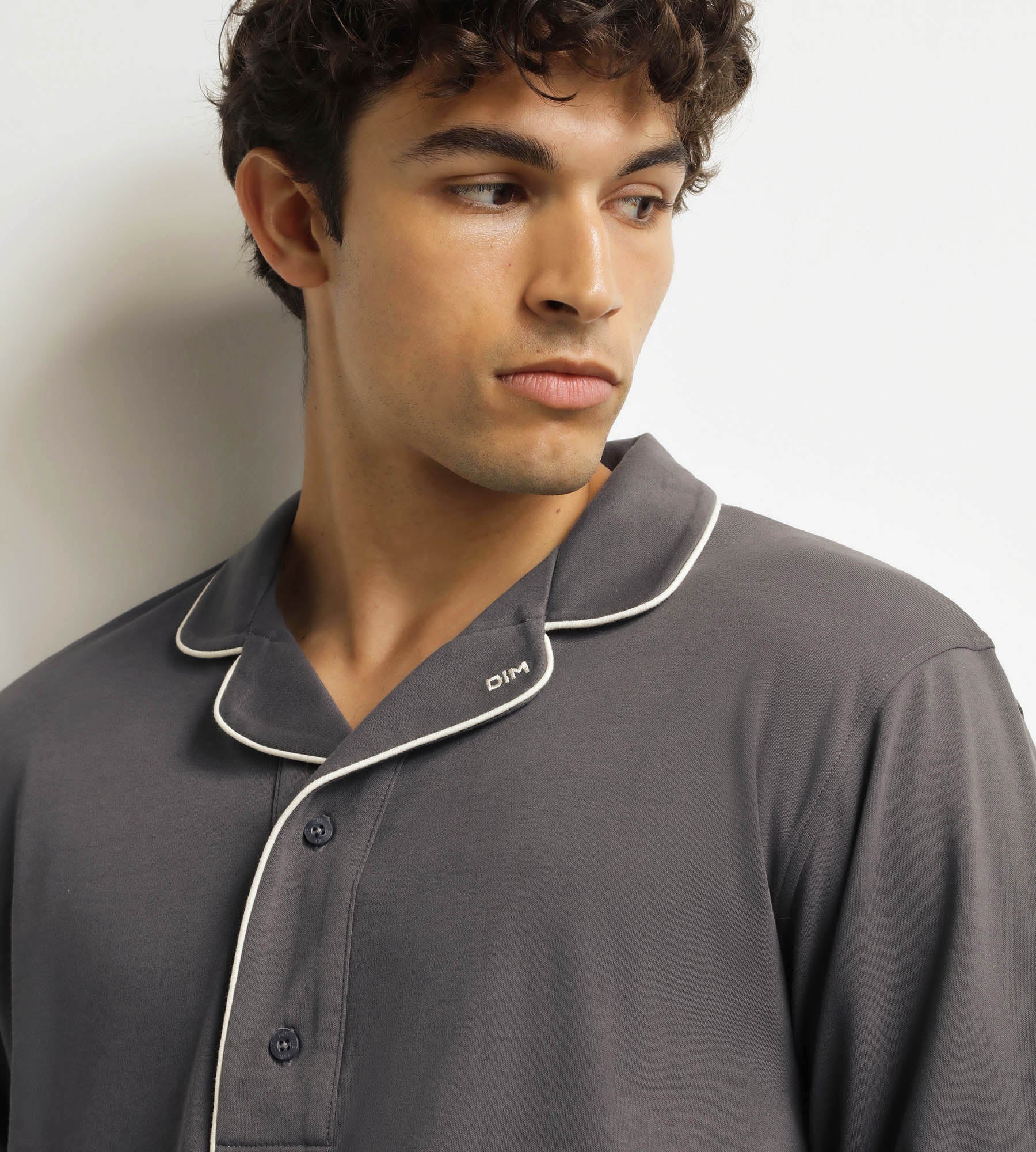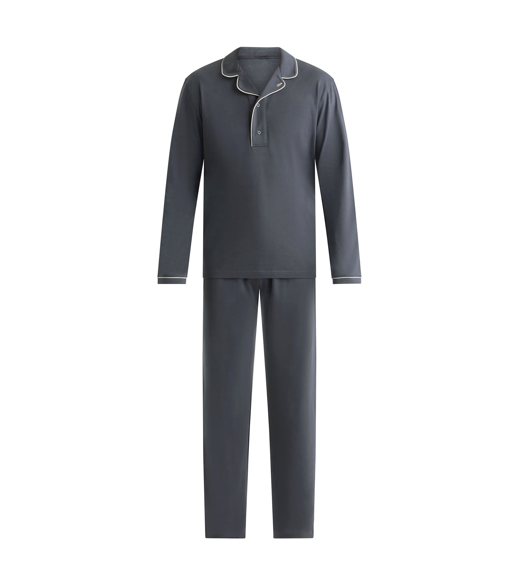 Apuesta por el pijama de hombre Dim en interlock de algodón gris oscuro, tan acogedor como elegante.