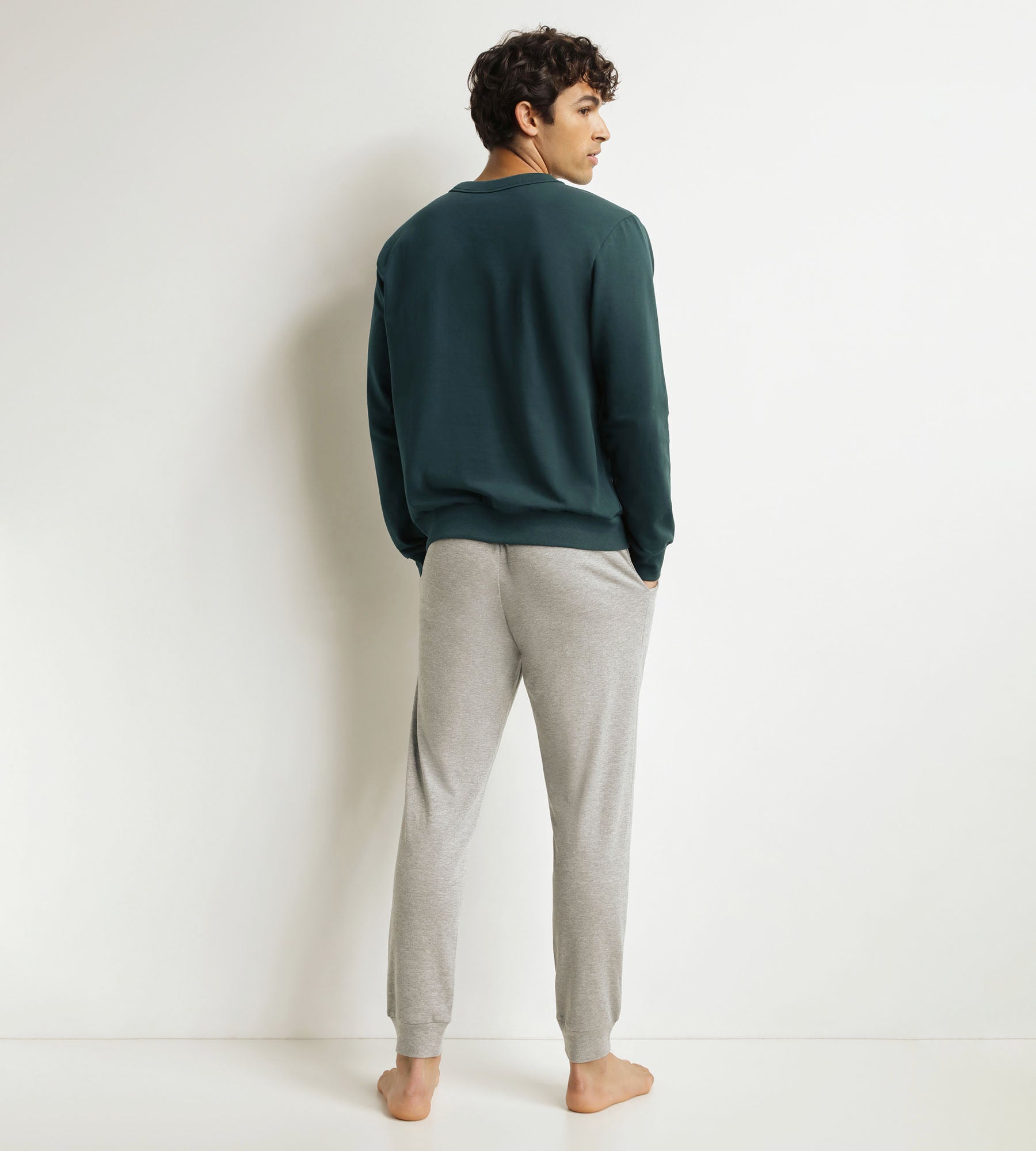 Conjunto de pijama para hombre Dim en forro polar verde y gris, ideal para relajarse con estilo durante el periodo festivo. - Los materiales suaves y cálidos con interior cepillado