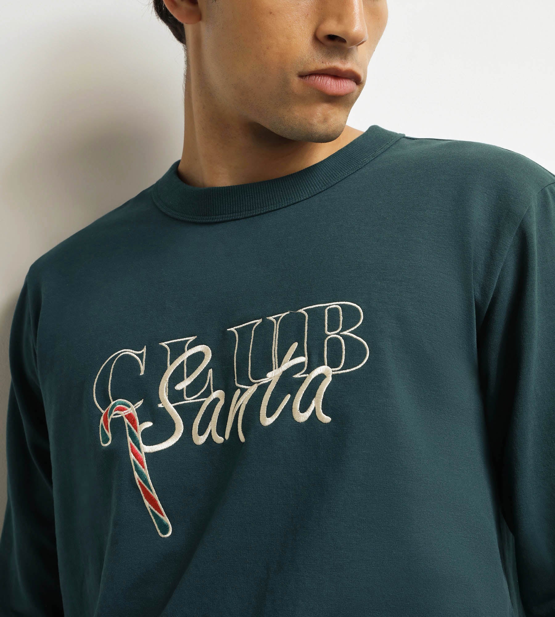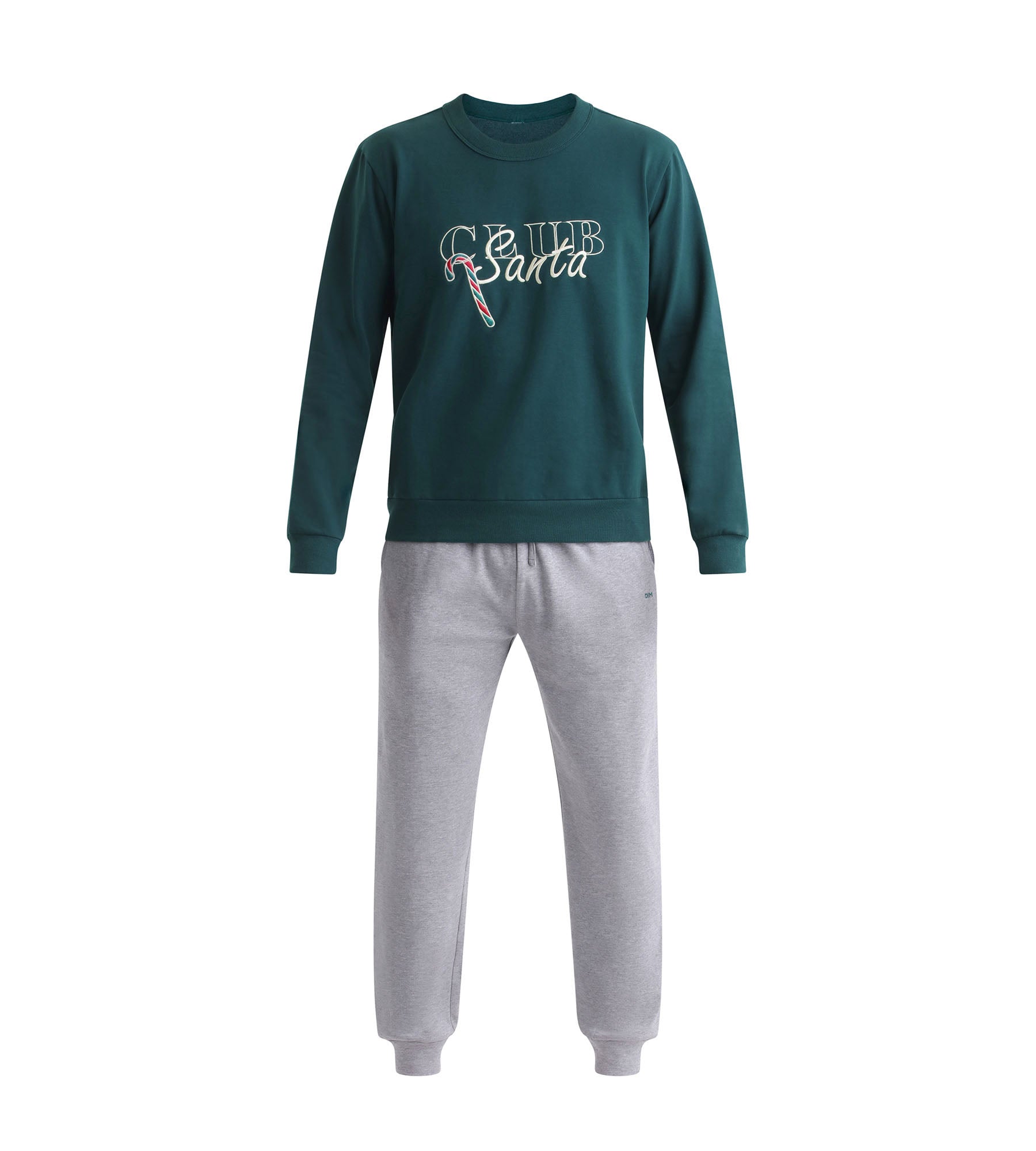 Diseñado para relajarse con estilo durante las fiestas, el pijama de hombre Dim presenta una parte superior de manga larga adornada con el mensaje "Club Santa" bordado, y pantalones de estilo jogging con cintura elástica. Su tejido cálido y suave lo convierte en una prenda imprescindible cuando llega el frío. El conjunto garantiza comodidad y libertad de movimientos, al tiempo que abraza los códigos clásicos de la Navidad.
