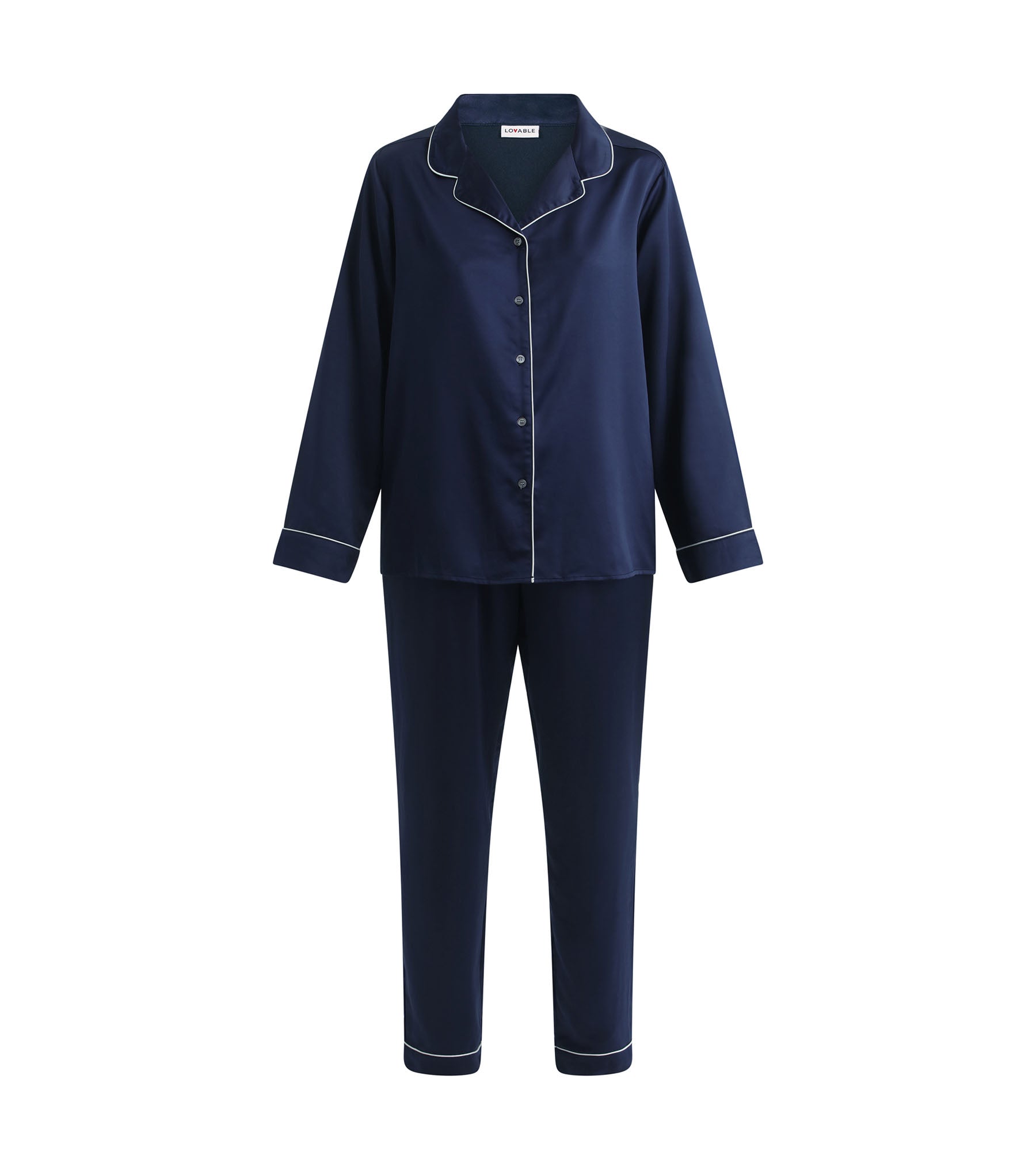 Compuesto por una camisa y un pantalón, este conjunto de pijama para mujer Dim Don't Disturb acompaña tus noches con comodidad y elegancia. Confeccionados en jersey, son a la vez suaves y transpirables, para un bienestar total. Con su corte clásico y sus detalles en contraste, este conjunto de camisa y pantalón azul medianoche tiene un aire casual-chic que puede llevarse tanto de noche como de día.