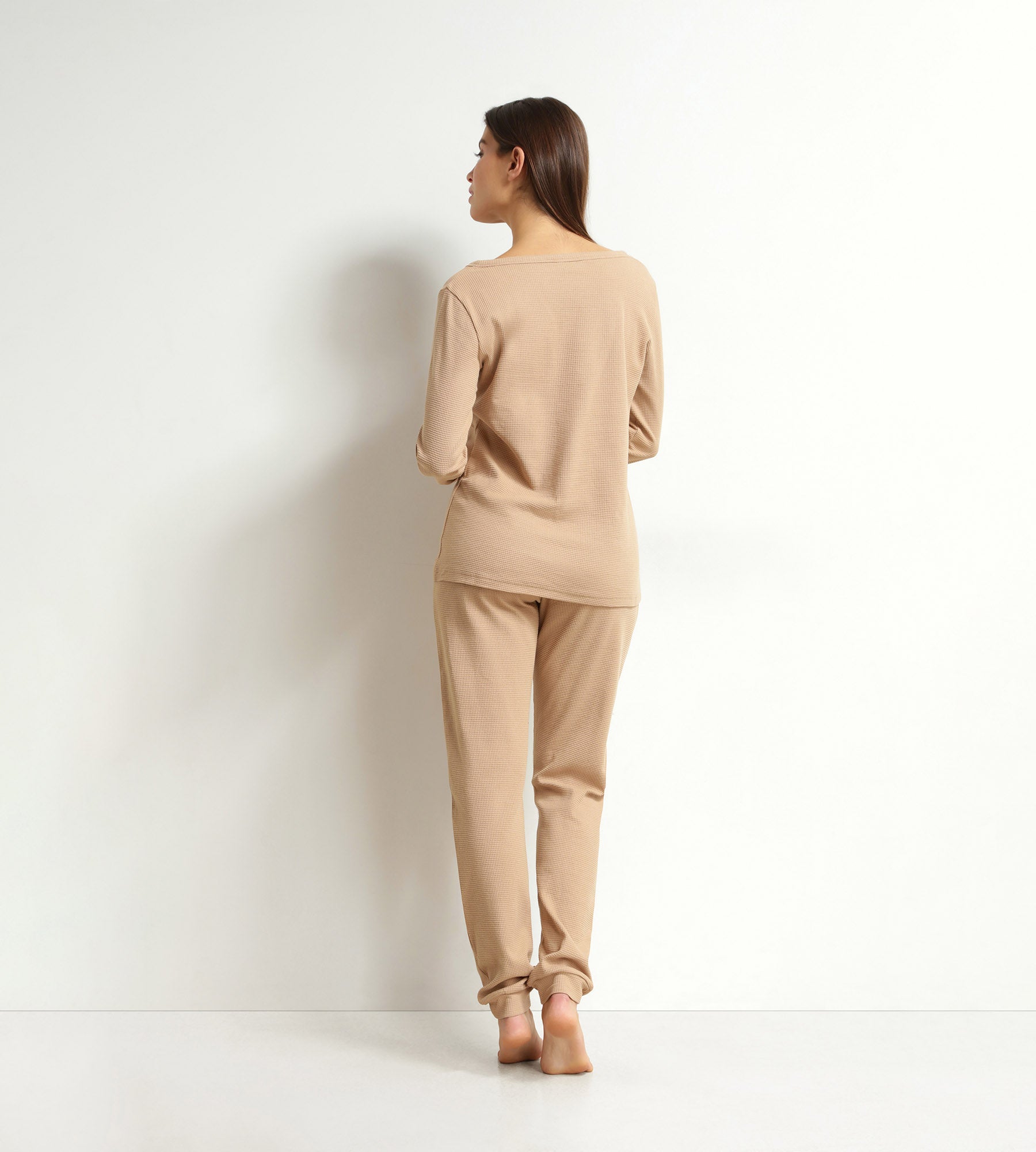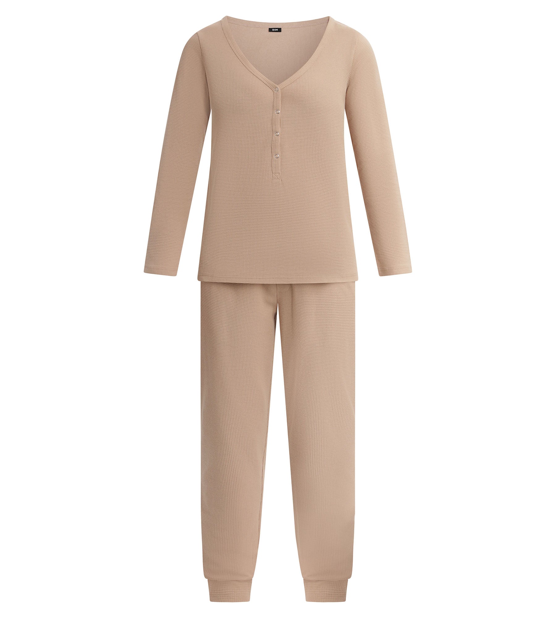 Con su mezcla de jersey texturizado marrón topo, el conjunto de pijama para mujer Dim Cosy Time convierte tus momentos de relax en instantes de bienestar.
