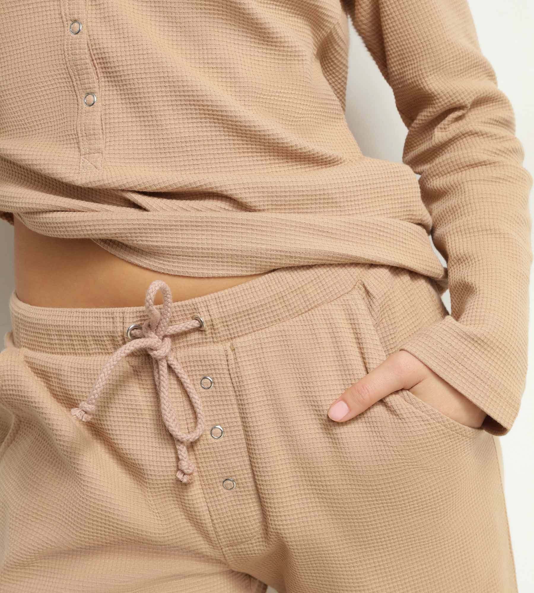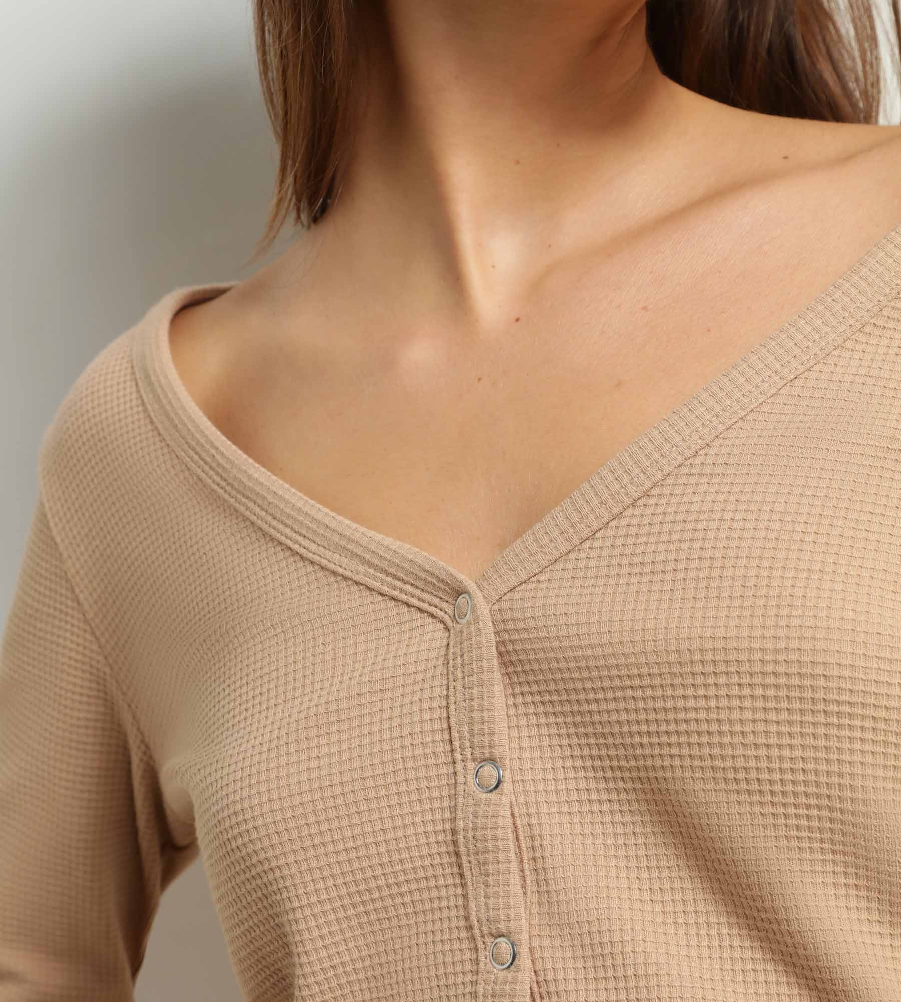 - La mezcla de jersey suave gofrado que te envuelve con ternura.
