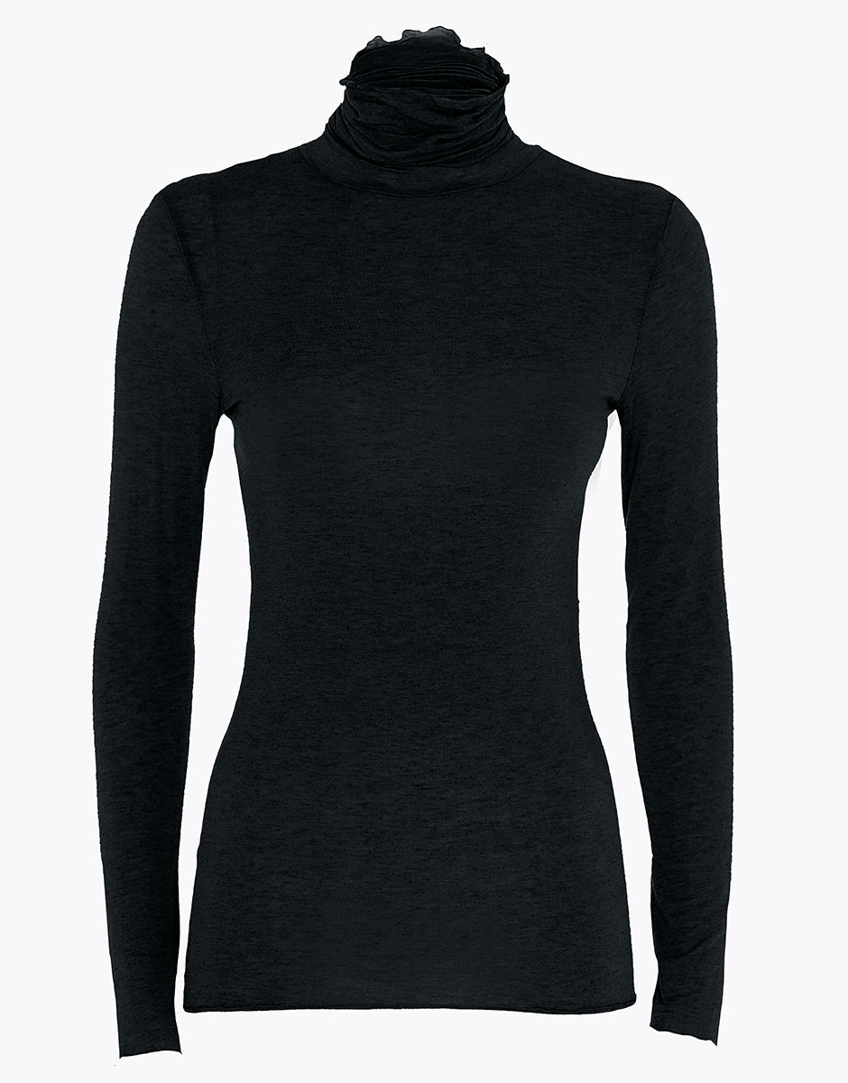 Ponte nuestro jersey de cuello alto y déjate mimar por su suavidad única.