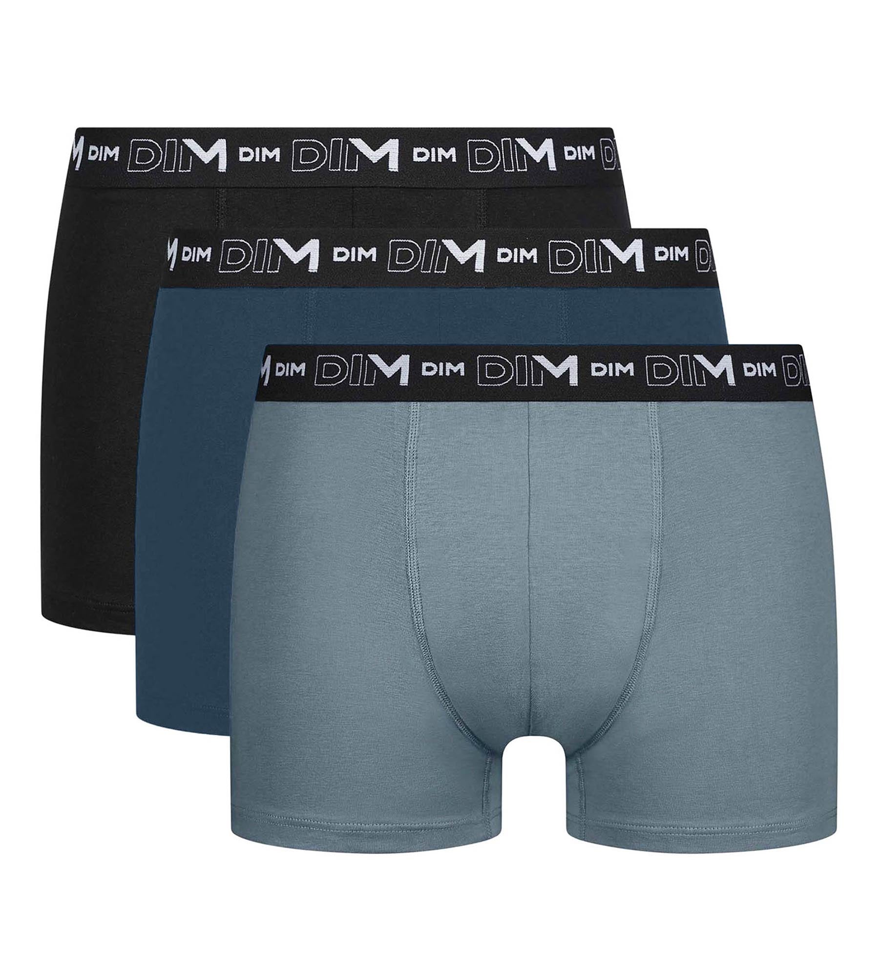 Cómodo y moderno, enamórate del pack de 3 bóxers para hombre Dim Cotton Stretch en negro, verde botella y gris granito!