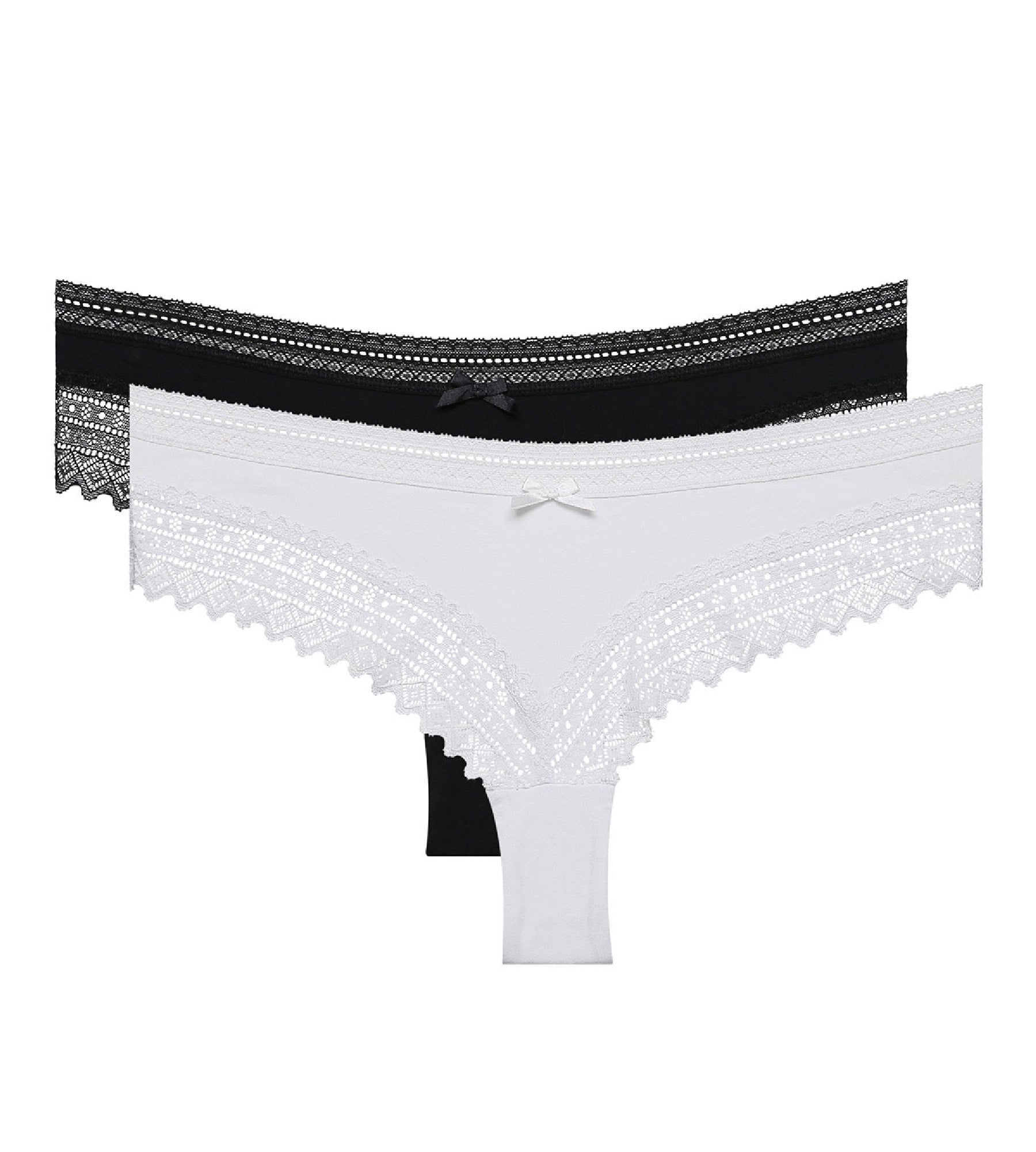 Lote de 2 culotes blanco y negro Sexy Fashion de algodón y encaje