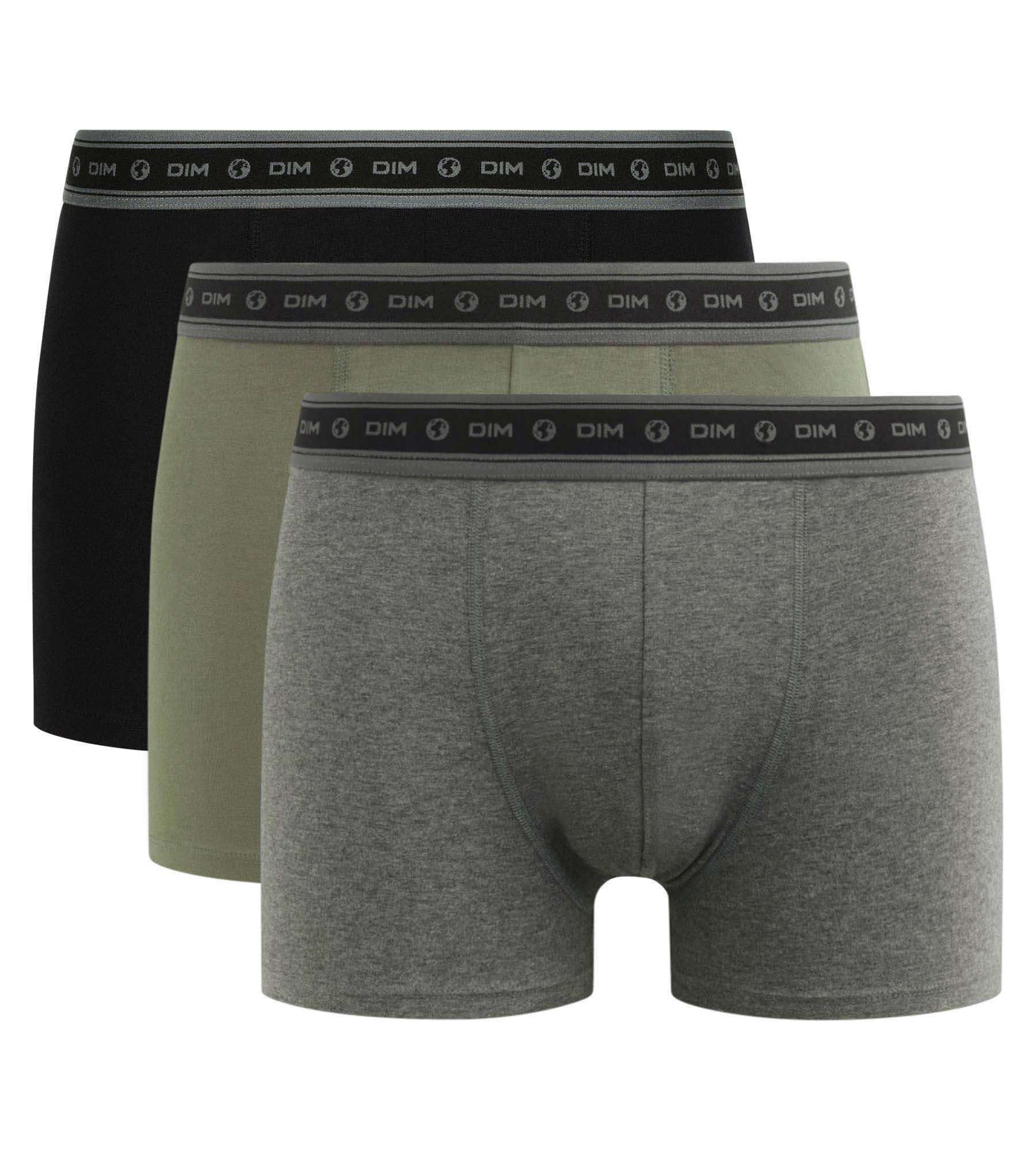 Lote de 3 bóxers de hombre de algodón orgánico certificado Verde, Antracita y Negro Dim Good