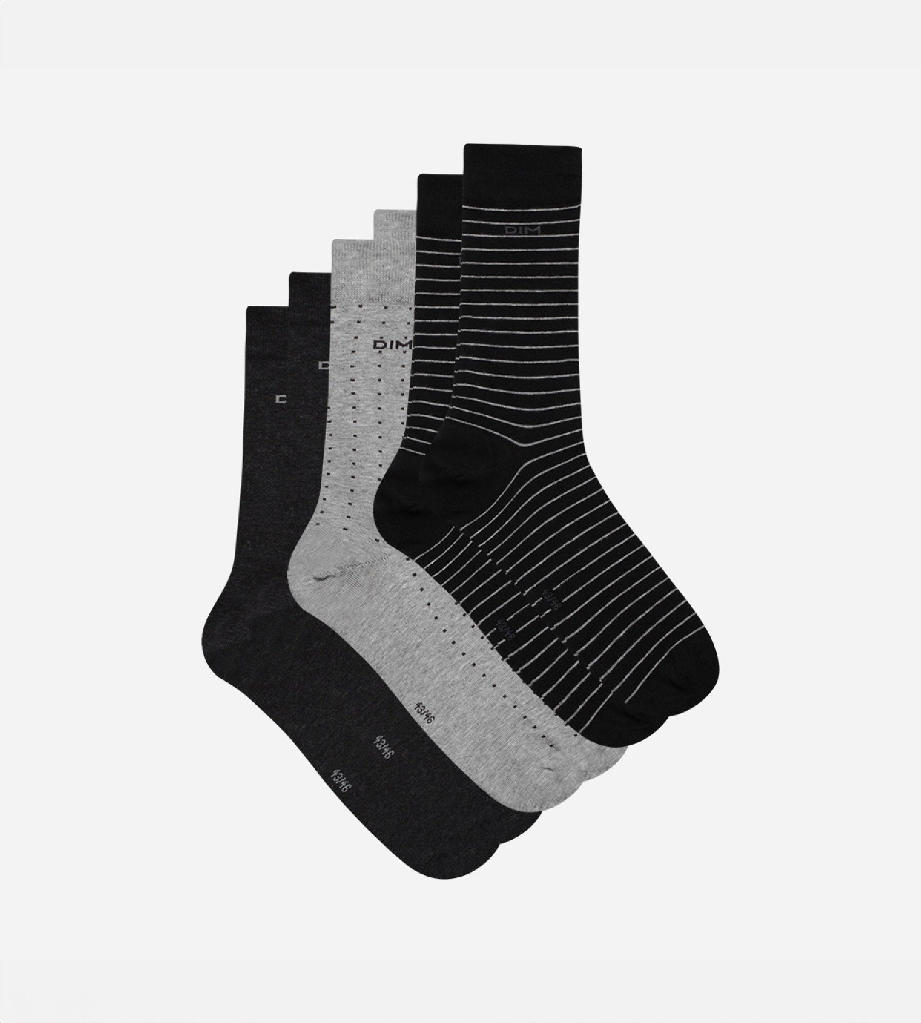 Lote de 3 calcetines negros y antracita con lunares y rayas para hombre