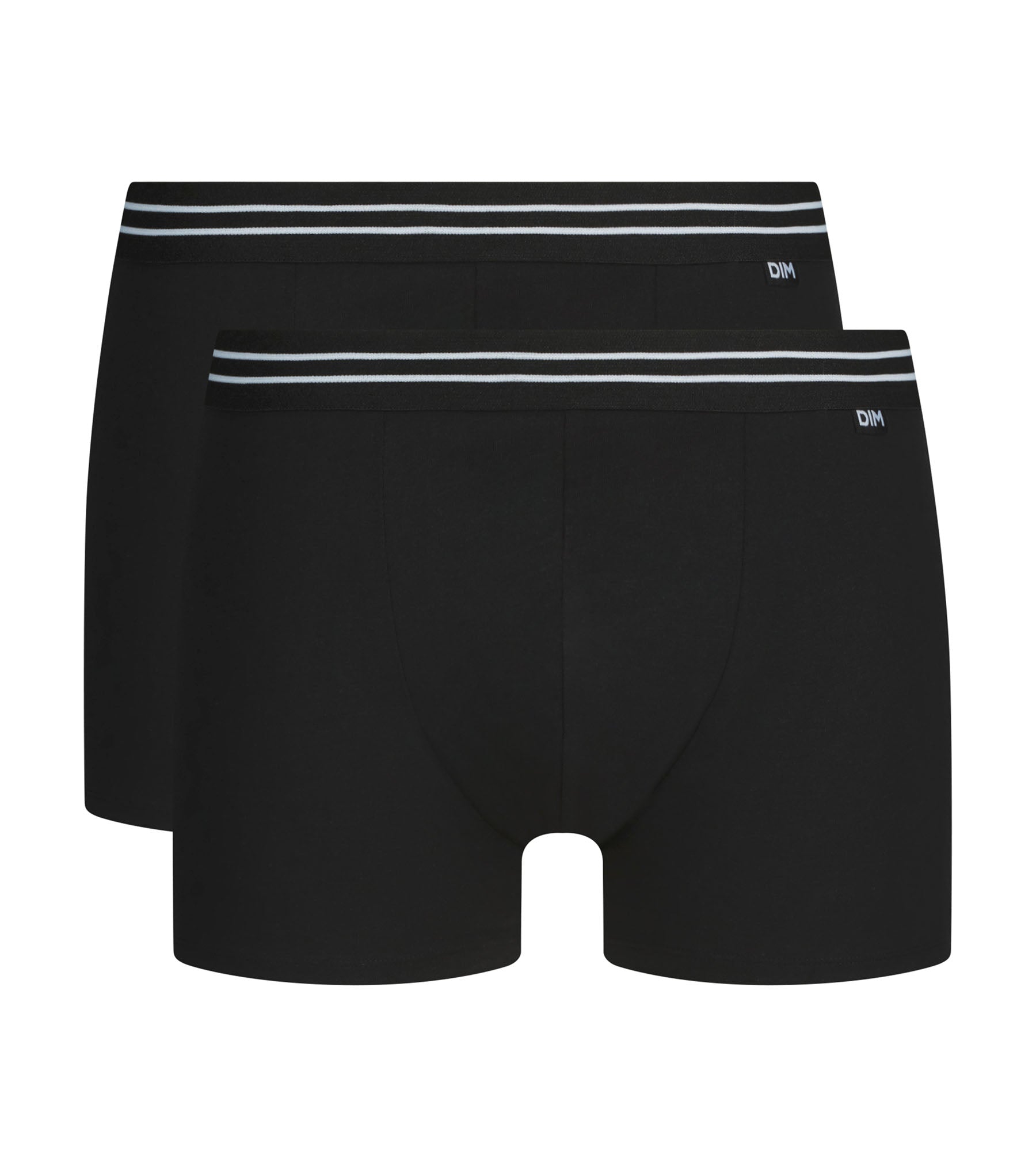Este pack de 2 bóxers Dim para hombre apuesta por la sobriedad: dos piezas negras, limpias, para acompañarte en todas tus actividades. El algodón elástico ofrece una flexibilidad natural y se adapta fácilmente a diferentes morfologías. El corte corto y ajustado del bóxer no se mueve y pasa desapercibido, incluso bajo pantalones ajustados. La cintura a rayas aporta un ligero toque gráfico, en consonancia con el espíritu minimalista de la gama EcoDim.