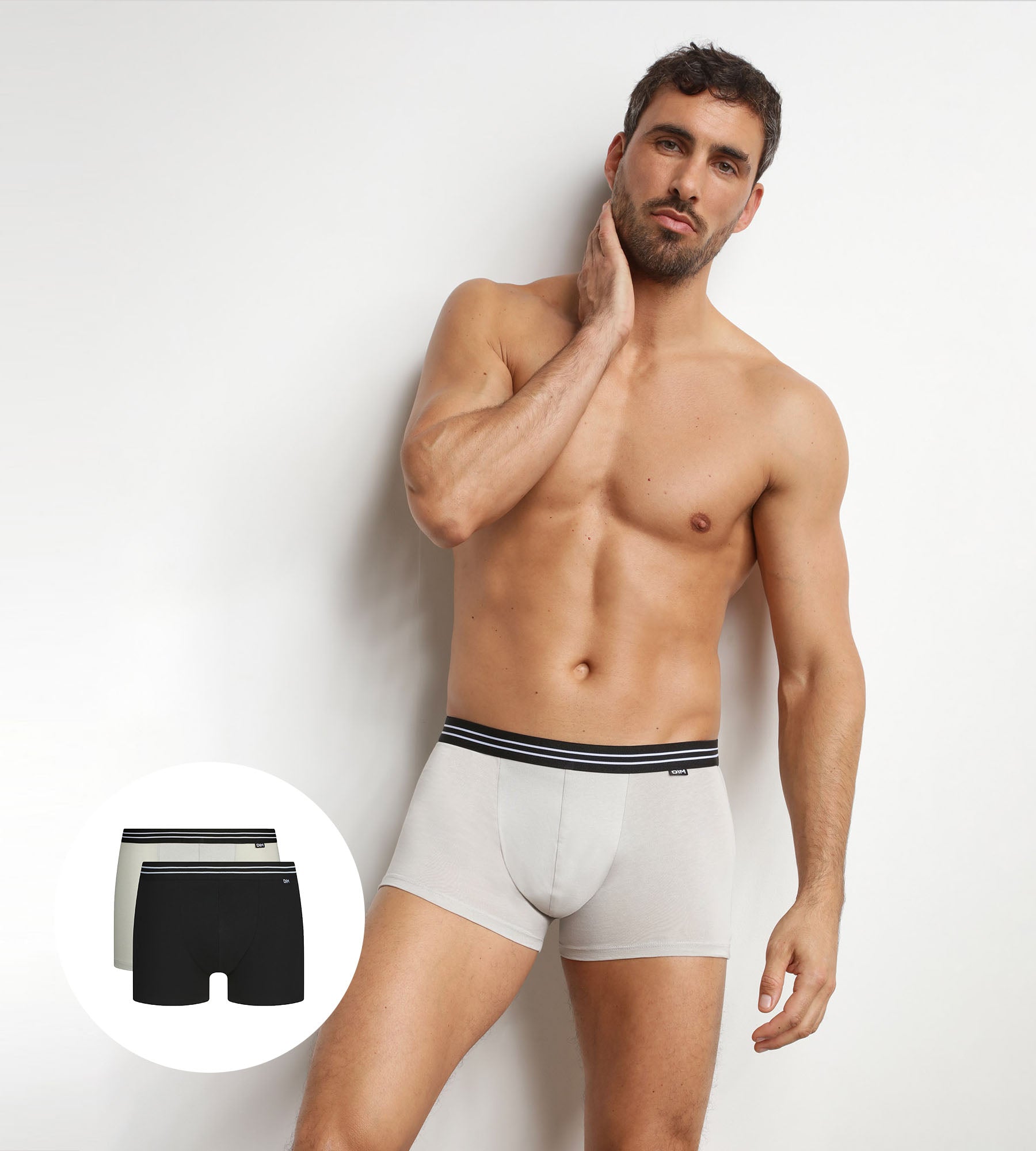 apuesta por el pack de 2 bóxers para hombre EcoDim de algodón elástico negro y gris, una prenda básica cómoda y minimalista para el día a día.