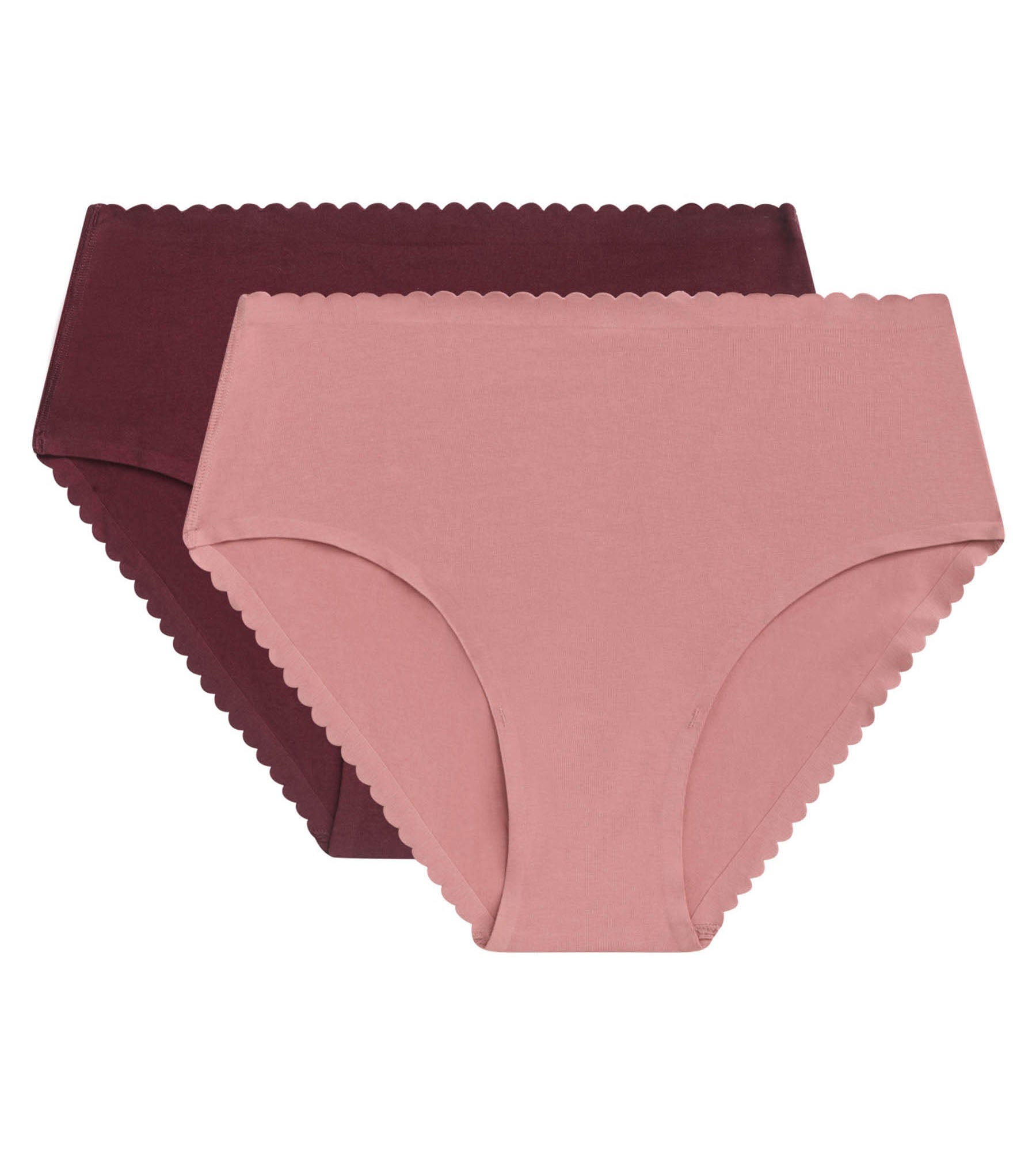 Vive el día con romanticismo y soltura gracias al pack de 2 braguitas altas de algodón elástico sin costuras en Rosa y Burdeos Body Touch Easy