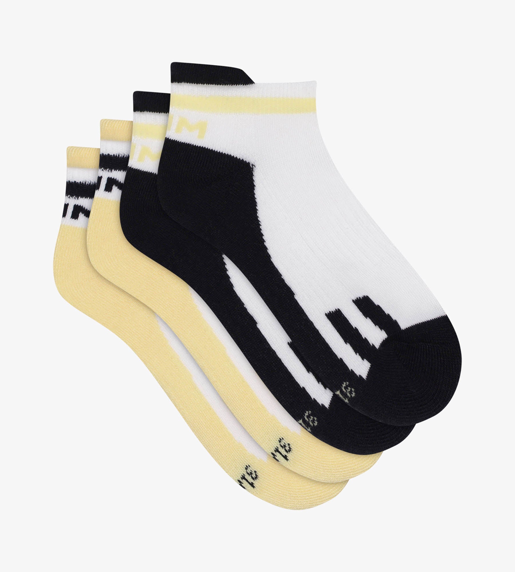 Combina protección y estilo con este pack de 2 pares de calcetines de algodón mixto en Blanco, Negro y Banana Dim Sport.