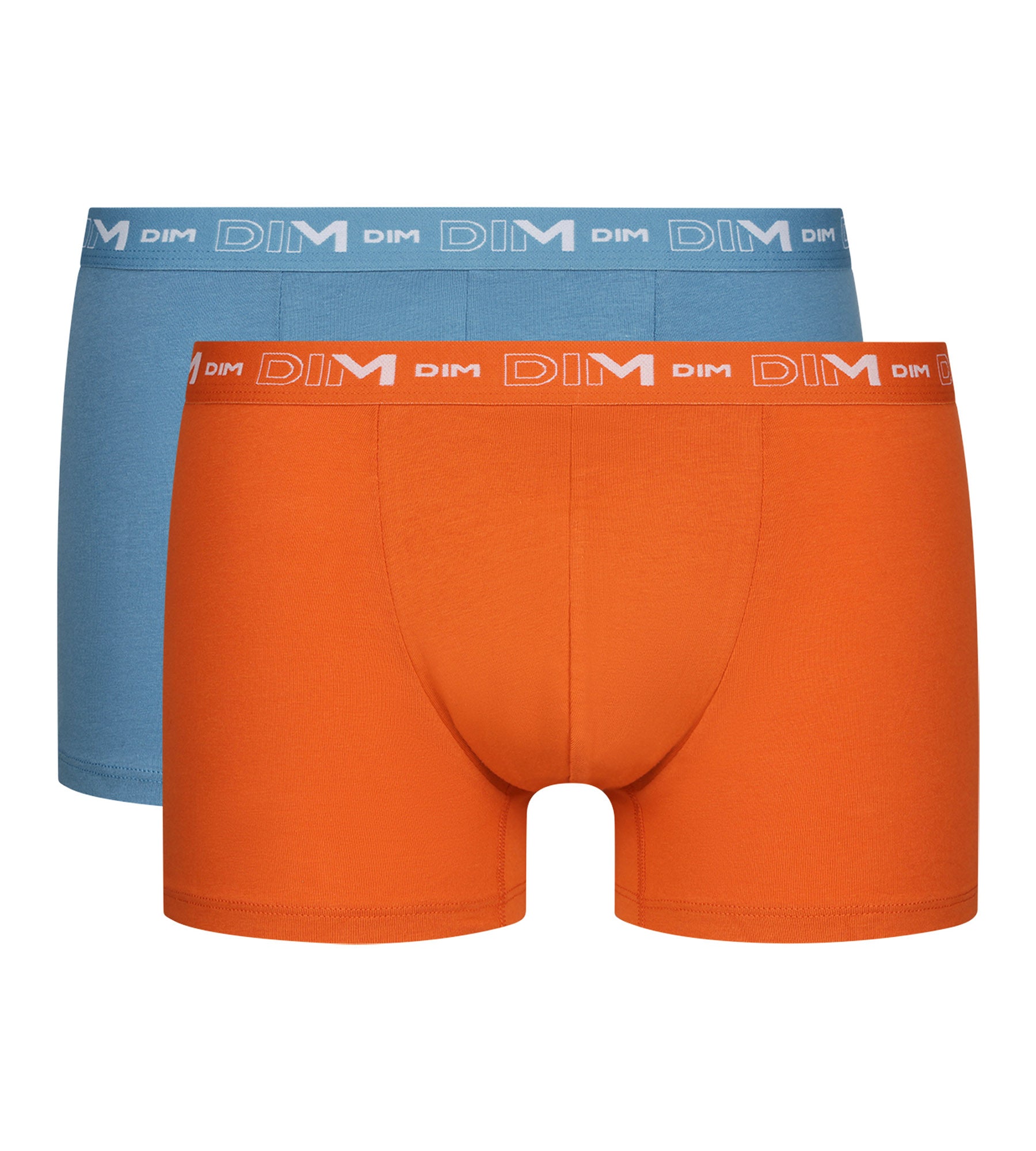 Añade una dosis de frescura a tu ropa interior de diario con el Pack de 2 calzoncillos bóxer de algodón elástico para hombre Dim, ¡en azul y naranja!