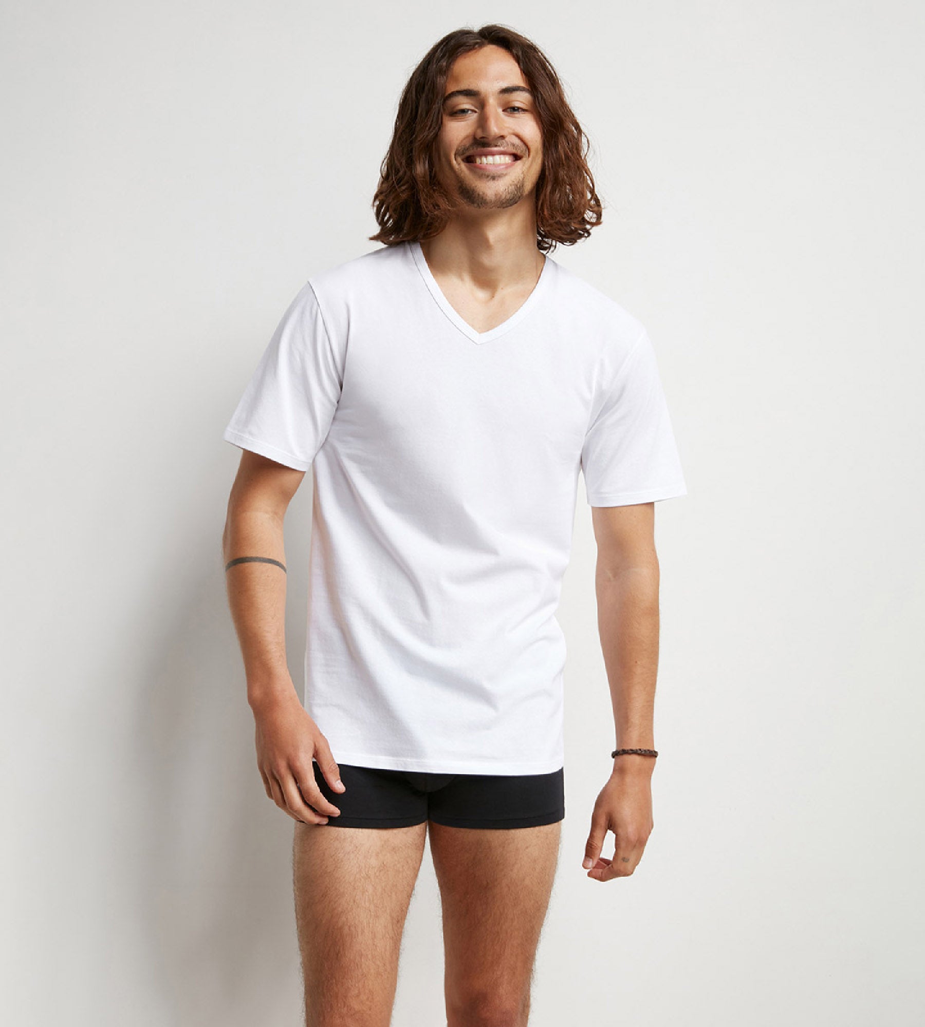 Pack de 2 camisetas de hombre termorreguladoras en algodón Blanco cuello en V Dim Sport