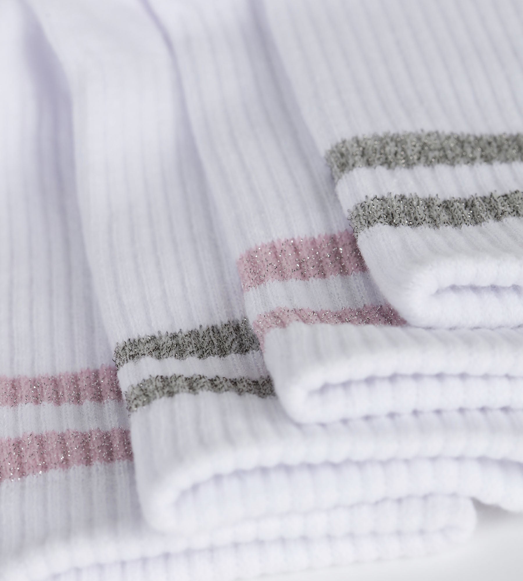 Pack de 2 pares de calcetines de algodón acanalado blanco y lurex rosa gris Dim Mode
