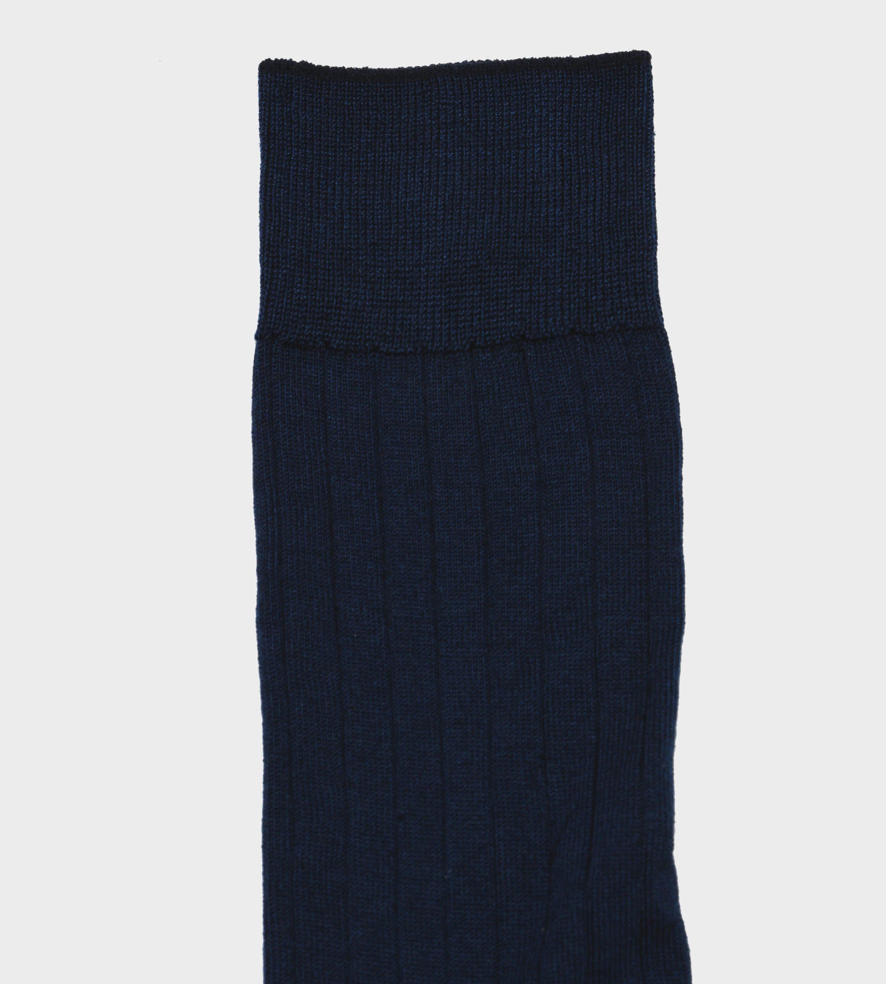 Ideales para ir a trabajar elegante, estos calcetines masculinos de hilo escocés en color azul marino son finos, lisos y de calidad superior.