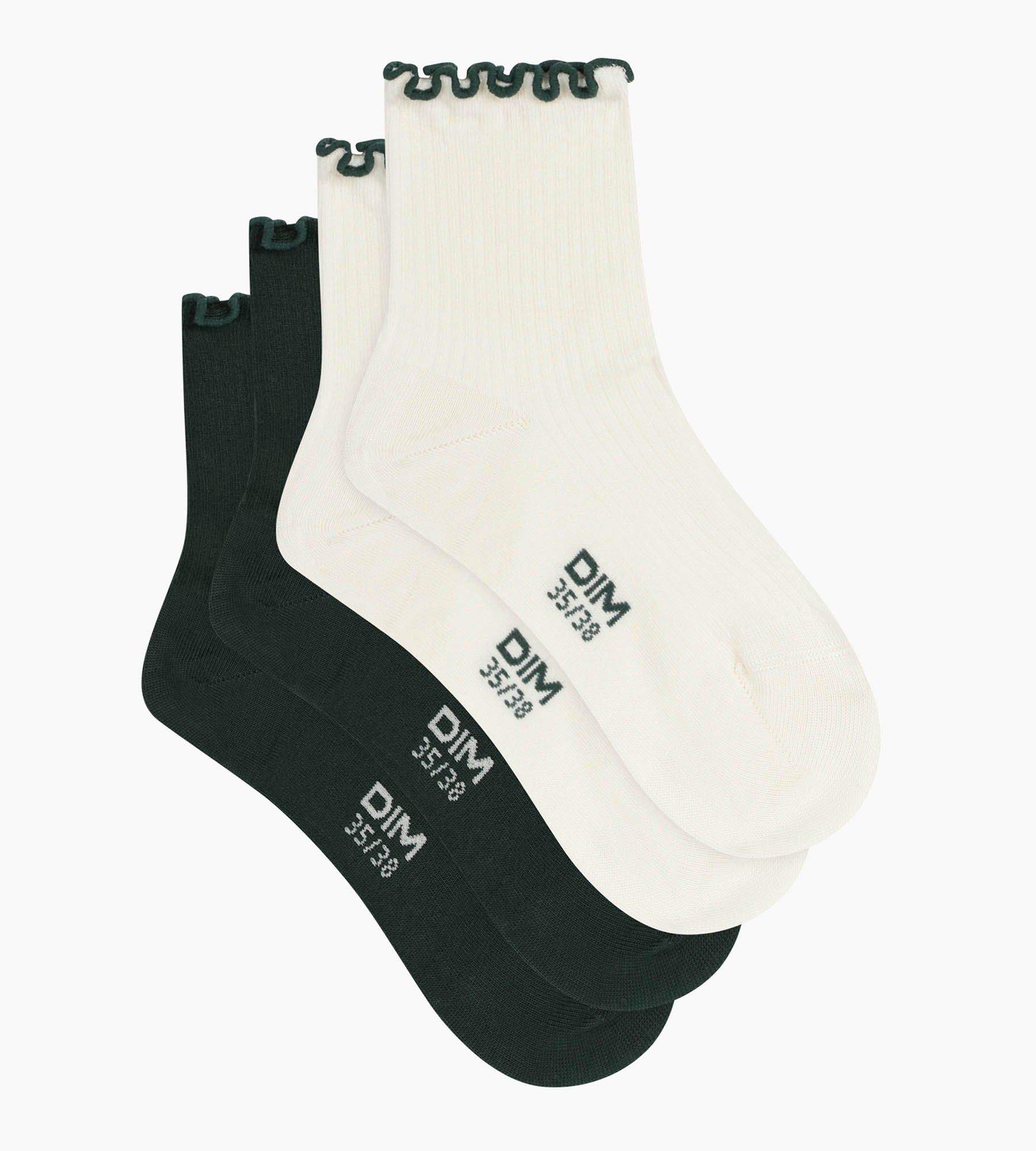 Pack de 2 pares de calcetines de mujer con volantes Pin Marfil Dim Modal