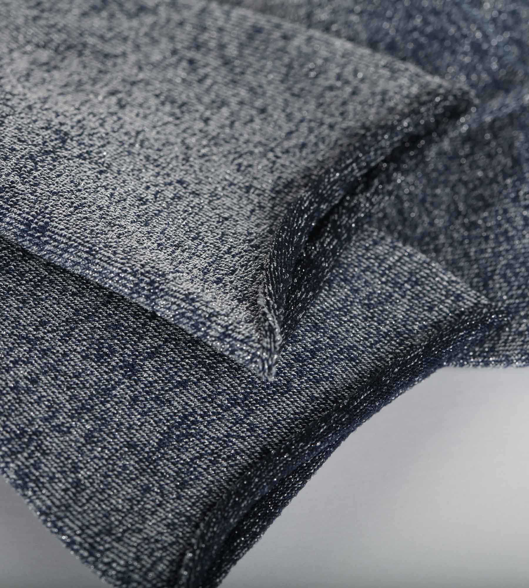 - Un tejido suave realzado con un hilo de lurex luminoso.
