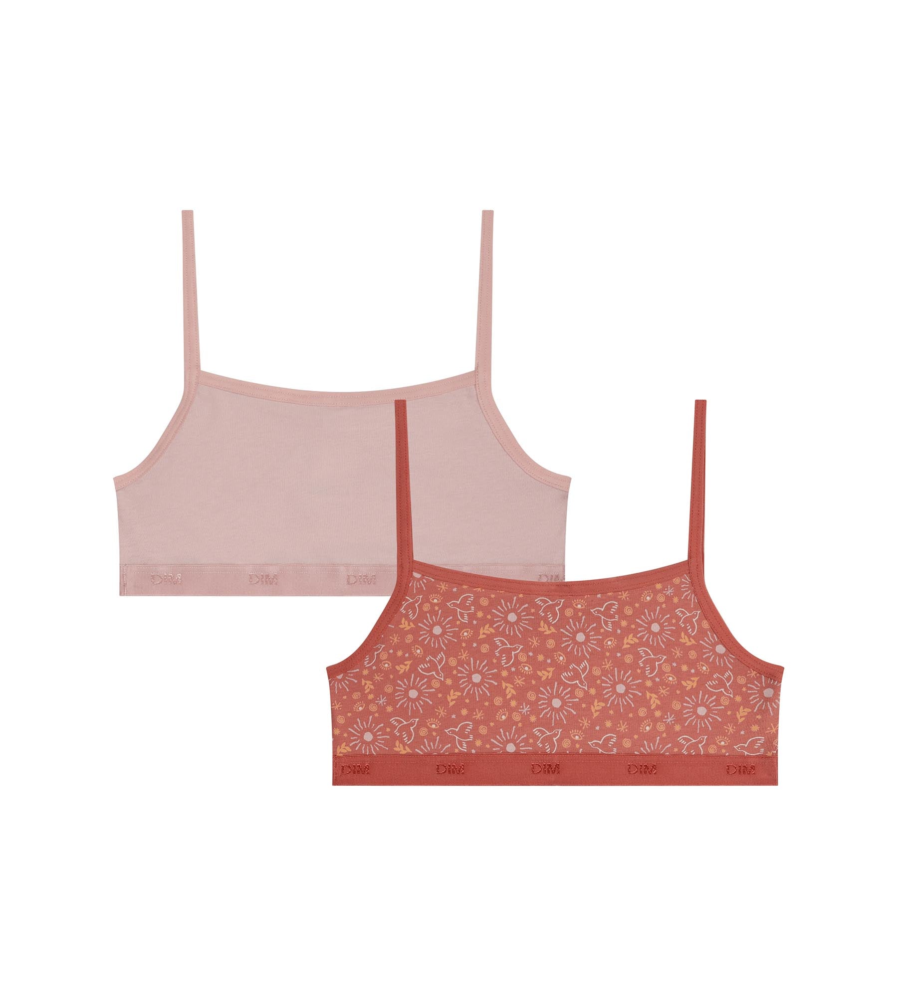 Aumenta su comodidad diaria con el pack de 2 sujetadores para niña de algodón elástico Rose Ocre Les Pockets, con estampados gráficos vibrantes.