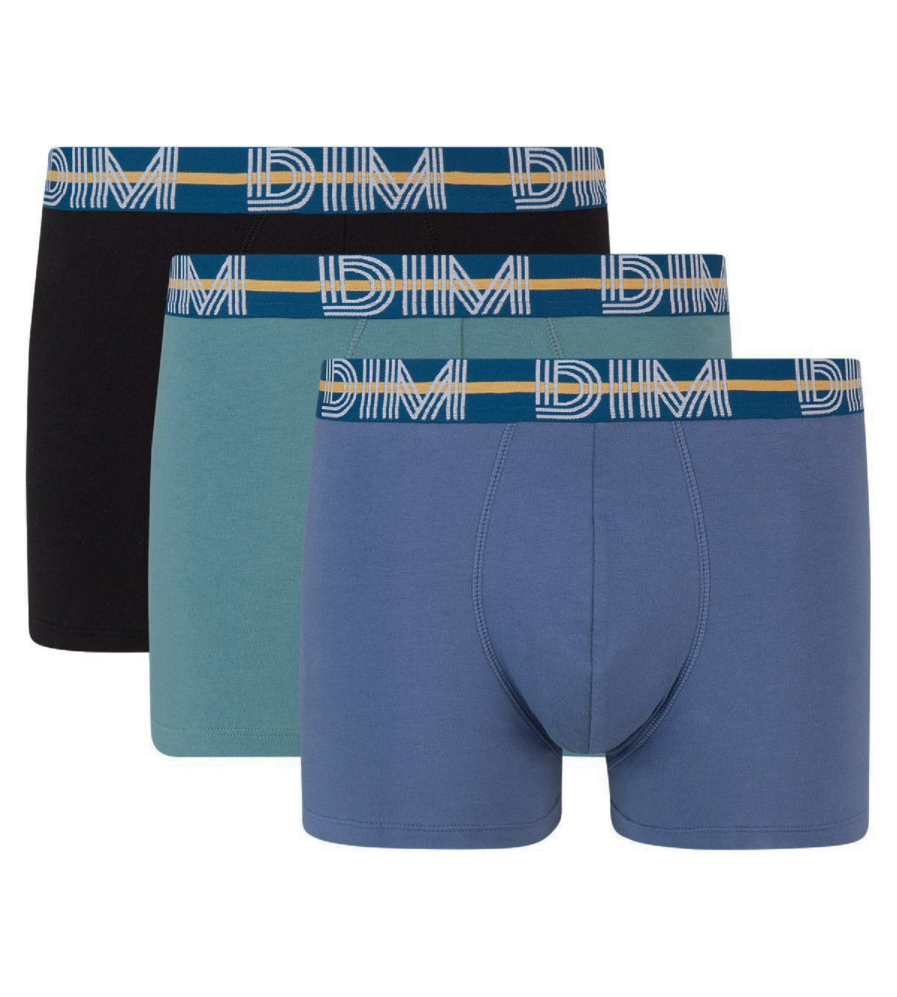 Pack de 3 bóxers azul, verde azulado y negro de algodón elástico Dim Powerful