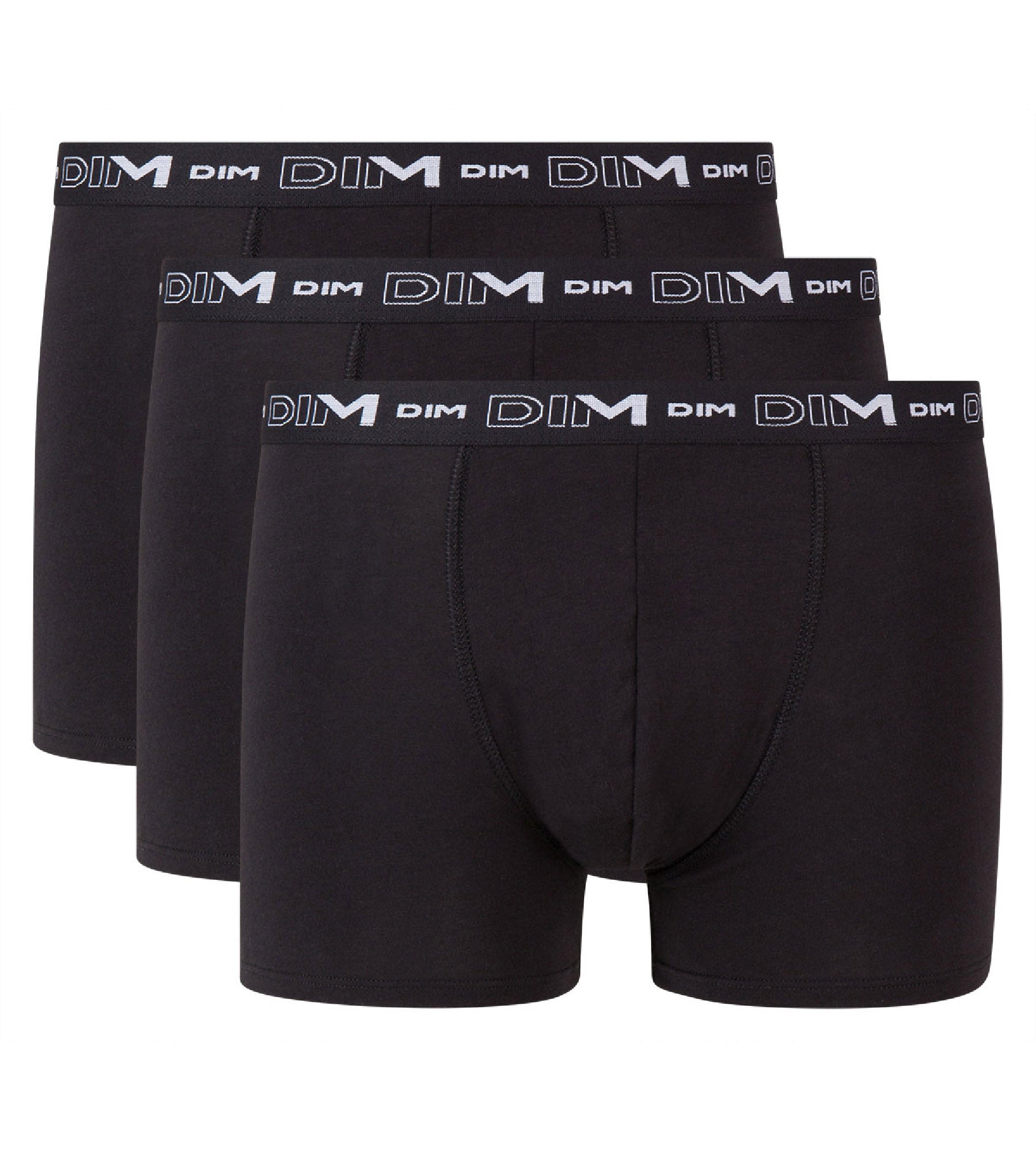 Te presentamos este pack de tres bóxers Coton Stretch negros de algodón elástico, perfectos para estar impecable a diario. Son comodísimos, gracias al algodón elástico del que están fabricados y a que no llevan etiqueta dentro. Su cintura contrasta con el logotipo de DIM en blanco y en distintos tamaños y le da un toque dinámico que rompe con la sobriedad del negro. Sabemos que son imprescindibles en tu armario y que una vez te los pruebes, no querrás deshacerte jamás de ellos. Puedes encontrarlos en distintas tallas, así que consulta nuestra lista y pídenos los que mejor se adapten a tu cuerpo.