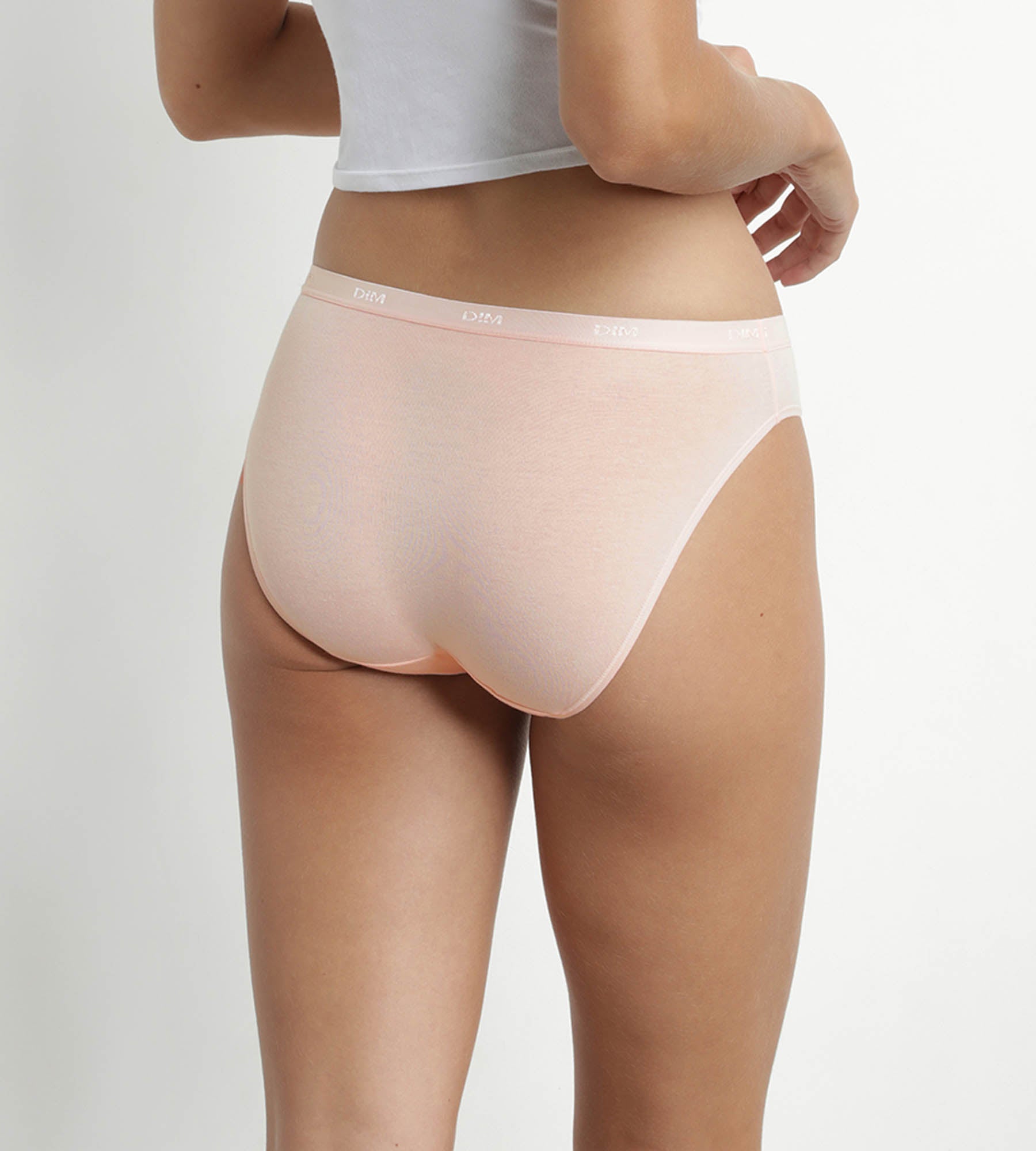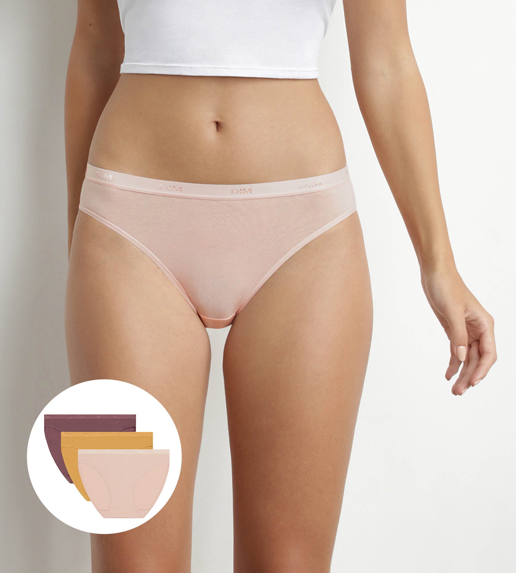 Consigue un look brillante con el Pack de 3 braguitas de algodón elástico para mujer Les Pockets EcoDim en amarillo, rosa y marrón.